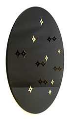 Iv Toshain, Shooting Stars, 2012, wood, throwing stars, stainless steel, 24 carat golden plated, wood, 121 cm diameter