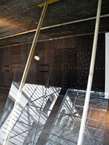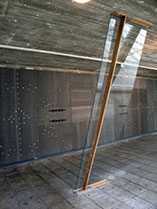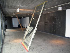 In der Installation von Gregor Eldarb geht es um den Lichteinfall durch das Glas, die Spiegelungen des urbanen Umfelds oder die Transparenz des einbetoniert wirkenden Pavillons. Gregor Eldarb gestaltet seine raumgreifende Installation aus Glasplatten die er in den längsgezogenen Raum der Passagen schräg einspannt. Gleichzeitig gegen die Wand projiziert wird der Ablauf von Einzelbildern, die Glasreflexionen zu unterschiedlichen Tageszeiten als Sequenzen zeigen.