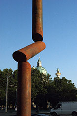 Die Baukörper emanzipieren sich, genauso wie die Skulpturen. Zunächst eingebunden in das Gefüge der architektonischen Formen, die hieratisch-politisch vorgegeben waren. Sie treten an die Öffentlichkeit. Das vollzieht sich seit Jahrhunderten. Aus der in die Architektur eingebundenen Skulptur entwickelt sich die Freiplastik. Aus Architekturgliedern entwickeln sich neue Bauformen, die aus der Wand heraustreten und ein neues Eigenleben beginnen. In Wien etwa: Die Säulen an der Karlskirche, die dem Tambour vorgestellt sind, oder die Pylonen von Otto Wagner, die nicht nur tragende, sondern symbolische Funktion übernehmen. Und dann natürlich die unzähligen Denkmäler, die den „öffentlichen Raum“ definieren sollten, ab dem 19. Jahrhundert und oft zu Dekorationen erstarrt sind. Der „öffentliche Raum“ hat, besonders in Wien, eine eigene Geschichte. Er wird besetzt - aber niemand kümmert sich darum, nämlich um die vielen Bedeutungs- und Behübschungsversuche, oft in Fußgängerzonen. Zeugnisse schlechten Gewissens, man ist froh, wenn etwas anderes kommt. Was ist das andere?