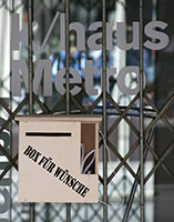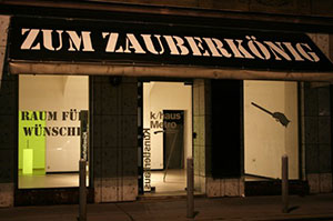 von Ödön von Horváth (Uraufführung 1931) ist eine „stille Straße“ im angrenzenden achten Bezirk, in der sich eine Fleischhauerei, eine Tabak-Trafik und die Puppenklinik „Zum Zauberkönig“ befinden. Die „stille Straße“ der Horvathschen Analysen zum Zeitpunkt katastrophaler Arbeitslosigkeit und Weltwirtschaftskrise soll der Lerchenfelderstraße von heute und der Wunsch nach mehr „Leben“ gegenüber gestellt werden. Die für lange Zeit leer stehenden Geschäftslokale der Einkaufstraße werden als toter Raum oder als Leerstellen empfunden. Johannes Stoll forciert diese Leerstellen in seiner Inter- vention indem er im versperrten Geschäftslokal ein Objekt zeigt. Ein unbelichtetes Fotopapier ist in einem 30 cm hohen Plexiglasstab eingerollt und wird dem Licht ausgesetzt. In diesem Stab wird die lichtempfindliche Oberfläche des Papiers, die sich allmählich verändert, präsentiert. Das leere Fotopapier bzw. die Leere wird mit den Zauberverweisen an der Geschäftsfront in Beziehung gesetzt und somit verspielt mit Bedeutungen aufgeladen. Zugleich wird mit dem Schriftzug „Raum für Wünsche“, sozusagen der Untertitel der Installation, nicht nur an den realen und nur von außen einsehbaren Raum hingewiesen sondern es wird der Versuch unternommen, die Innenräume unserer Phantasiewelt zu betreten und unsere eigenen Wünsche zu artikulieren.