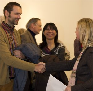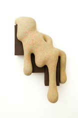 Chiho Aono: Ich beschäftige mich in meiner künstlerischen Arbeit seit langem mit Flüssigkeit, Viskosität, Oberflächenspannung, die die Basis für meine keramischen Objekte bilden. Ganz intensiv setze ich mich seit einigen Jahren mit dem Thema „Tropfen“ auseinander. Die Tendenz meiner keramischen Objekte geht dabei in Richtung biomorpher Strukturen. Das Material Ton lässt es zu, Bewegungsmomente einer scheinbar zähen Flüssigkeit einzufrieren. Im Spannungsfeld von bevorstehender Veränderung bzw. Bewegung der Tropfenform und momentaner Position entstanden zahlreiche Variationen von Skulpturen.