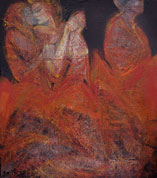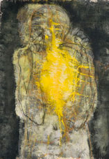 Meist sind es Menschen, Gestalten, Torsi, Köpfe – umwoben von schwingenden Gliedern, schwebend und doch erdenschwer. Wohin blicken die Augen Ihrer Figuren, nach innen oder in eine erahnte Unendlichkeit oder in beides? Ist die scheinbare Teilnahmslosigkeit nicht die bildlich gewordene Gelassenheit, das eigene menschliche Schicksal anzunehmen, um daran zu wachsen?“.