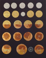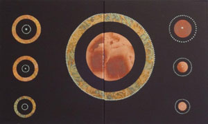 Kreis, Quadrat, Punkt und Linie - geometrische Formen als Elemente der Ordnung, die als primäre Spuren von Gabriela Medvedova gesetzt werden. Gesetzt in spielerischen Abfolgen und Strukturen, die jedoch stets einem System untergeordnet bleiben. Die Ratio würde sich im bekannten Kosmos wähnen, wären da nicht die Farben. Strahlend, fast blendend, lebensbejahend vermitteln die sinnlichen Farbenklänge und -spektren den Schöpfungsprozess. Wie bei einem Dominospiel folgt man einem Muster, das den Betrachter von einem Motiv zum anderen leiten und an der Grenze zwischen dem Bewussten und dem Unbewussten, zwischen der Ratio und der Emotion, schweben lässt.