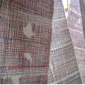 Das Zeichnen mit Pinsel und Tusche wurde zu einem täglichen Ritual, ein Experimentierfeld für dicke, dünne Linien, sich auflösende und sich fast zur Fläche verwandelnden Strukturen auf Papier, teilweise auch auf Leinwand. Es sind Tageszeichnungen von persönlich erlebter Zeit und so, wie auch die Langsamkeit des Arbeitsprozesses, eine folgerichtige Fortsetzung und Erweiterung der künstlerischen Arbeit am Webstuhl.