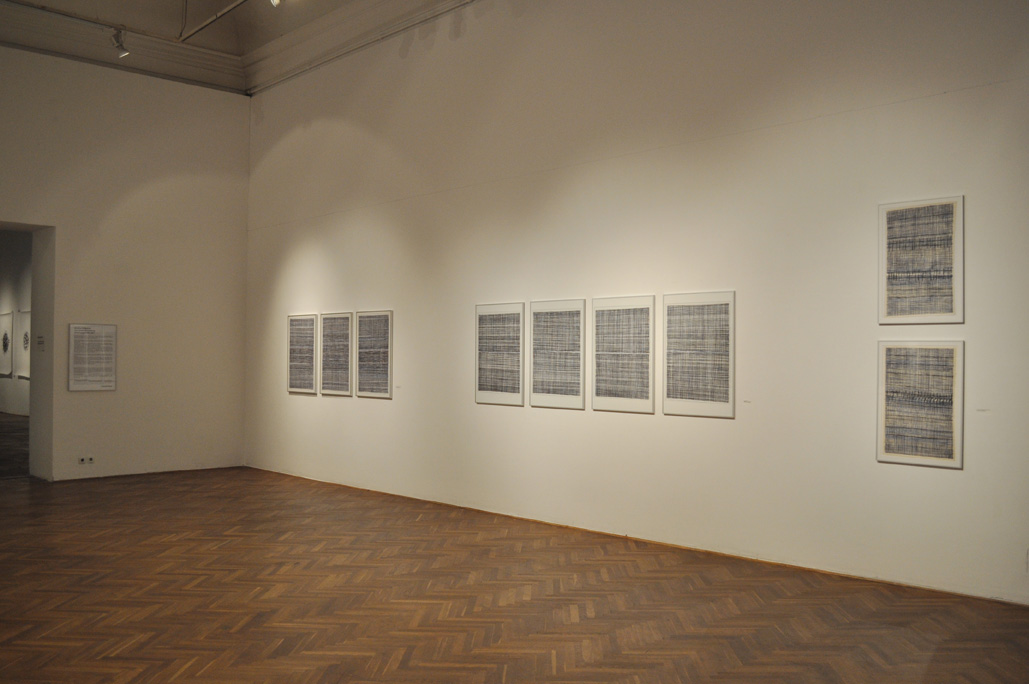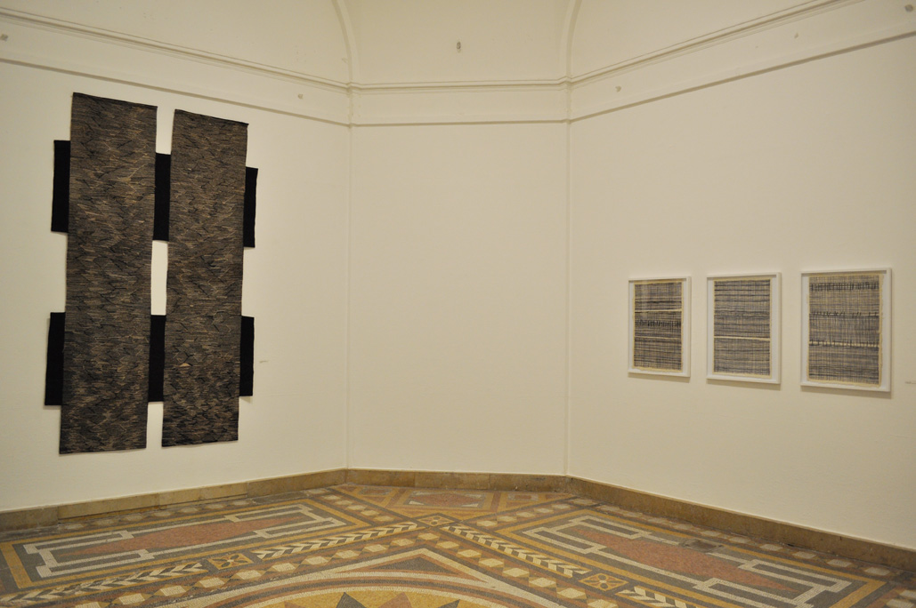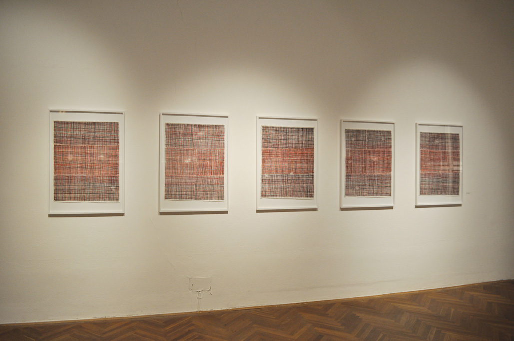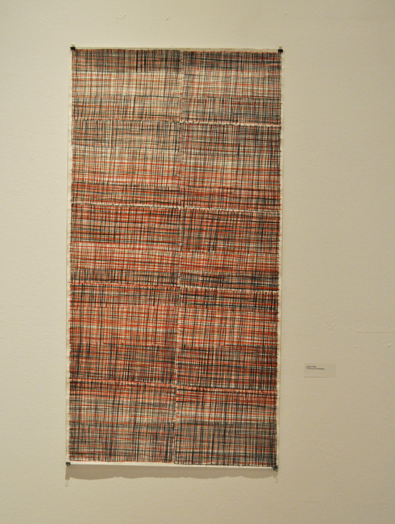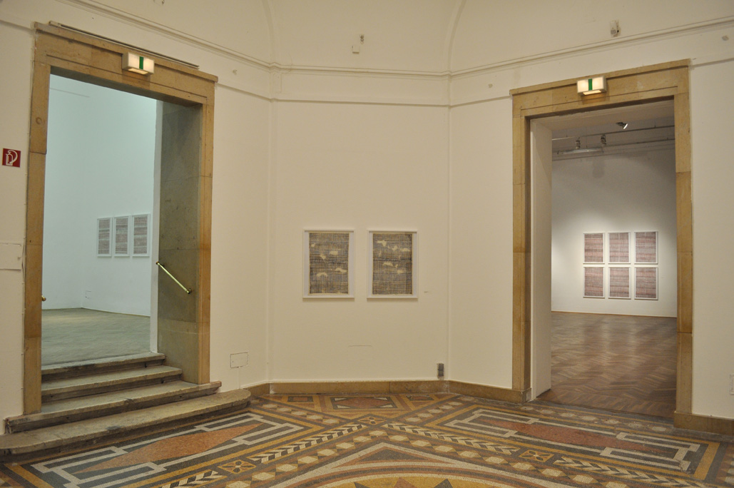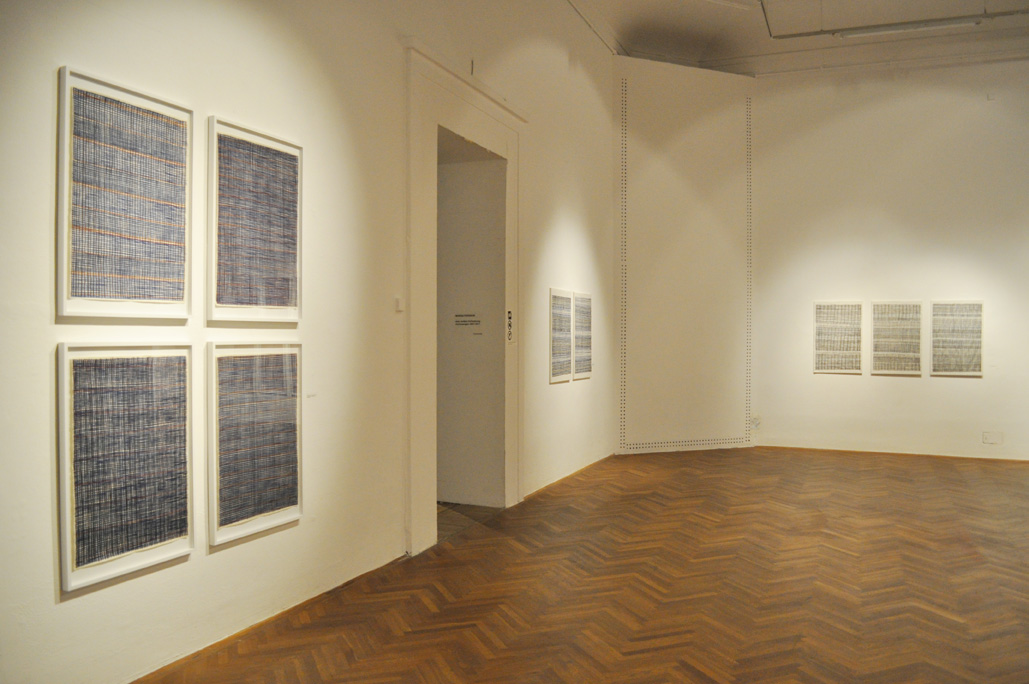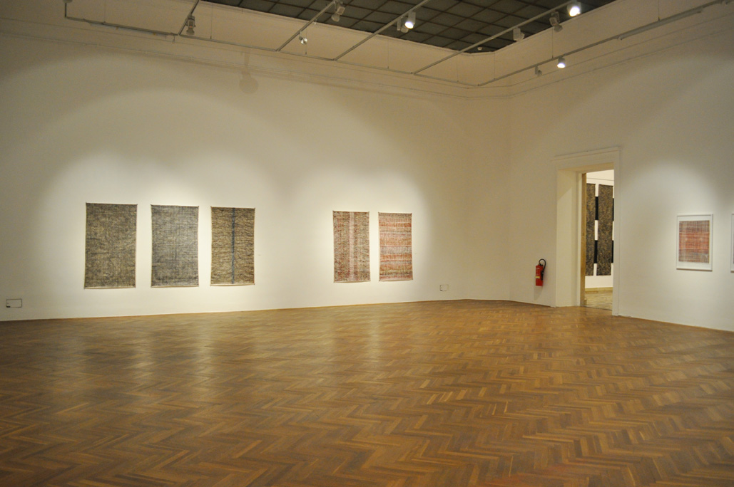 Denn für sie ist das einfache Prinzip der zwei gekreuzten Fäden so elementar, dass sie zuletzt in ihre Zeichnung dieses Prinzip in Serie nachvollzieht und damit rein visuelles „Gewebe“ dem Stofflichen aus Wolle, Leinen und Papier zur Seite stellt. Diese Konzentration auf den Prozess und Verlauf des Webens führt zu einer neuen Wahrnehmung von Zeit und ihrem Maß, von Ordnung und Experiment.