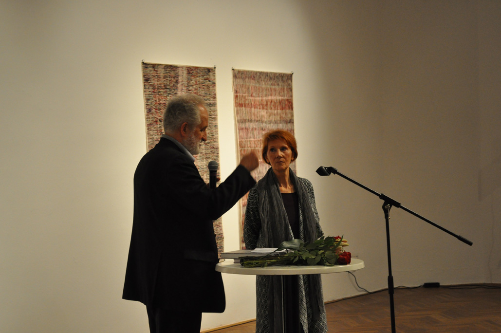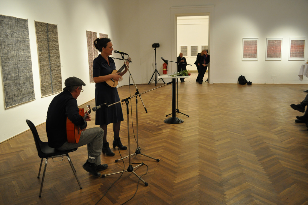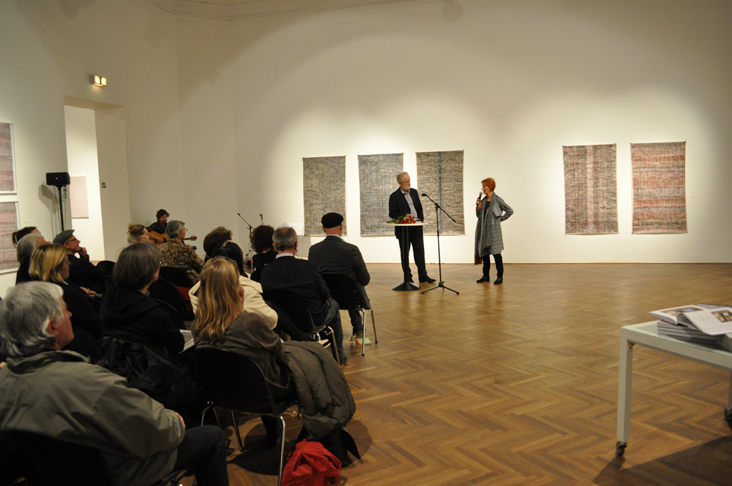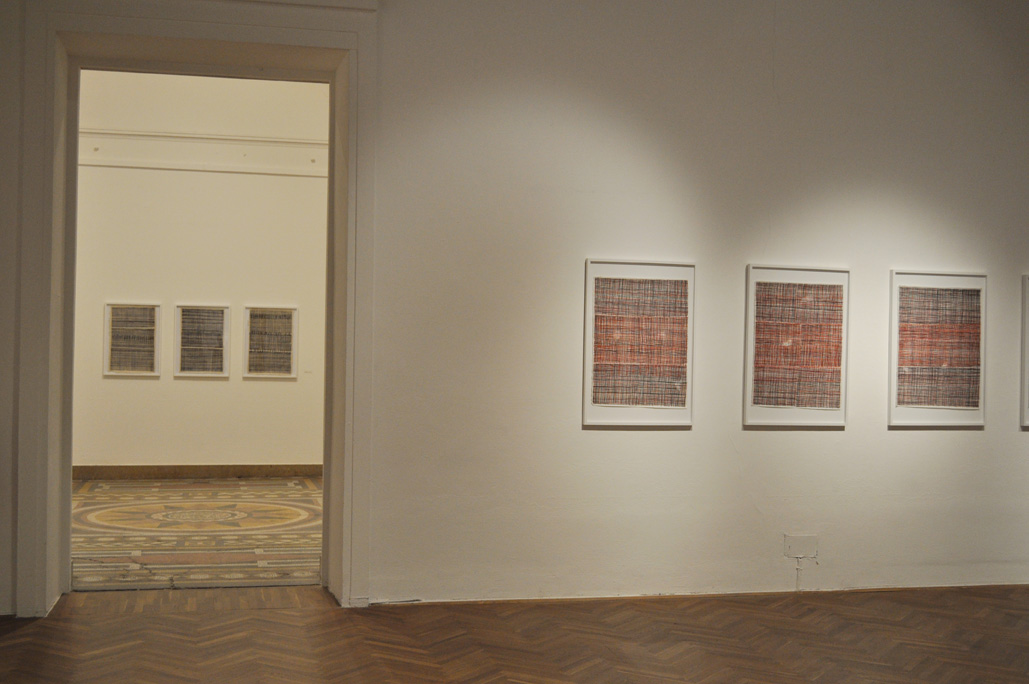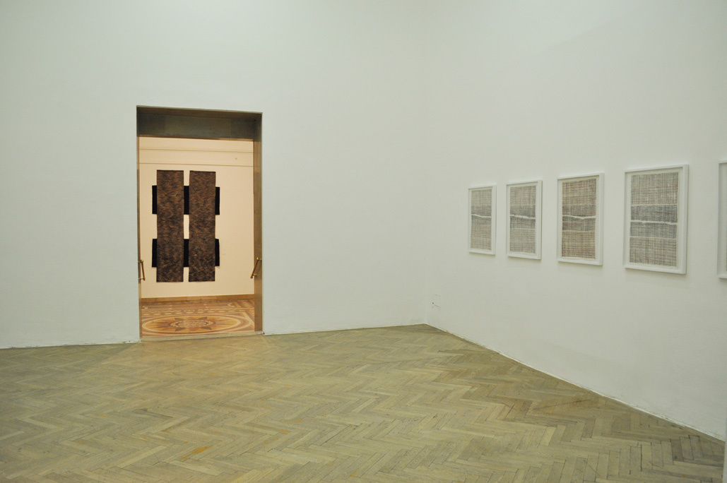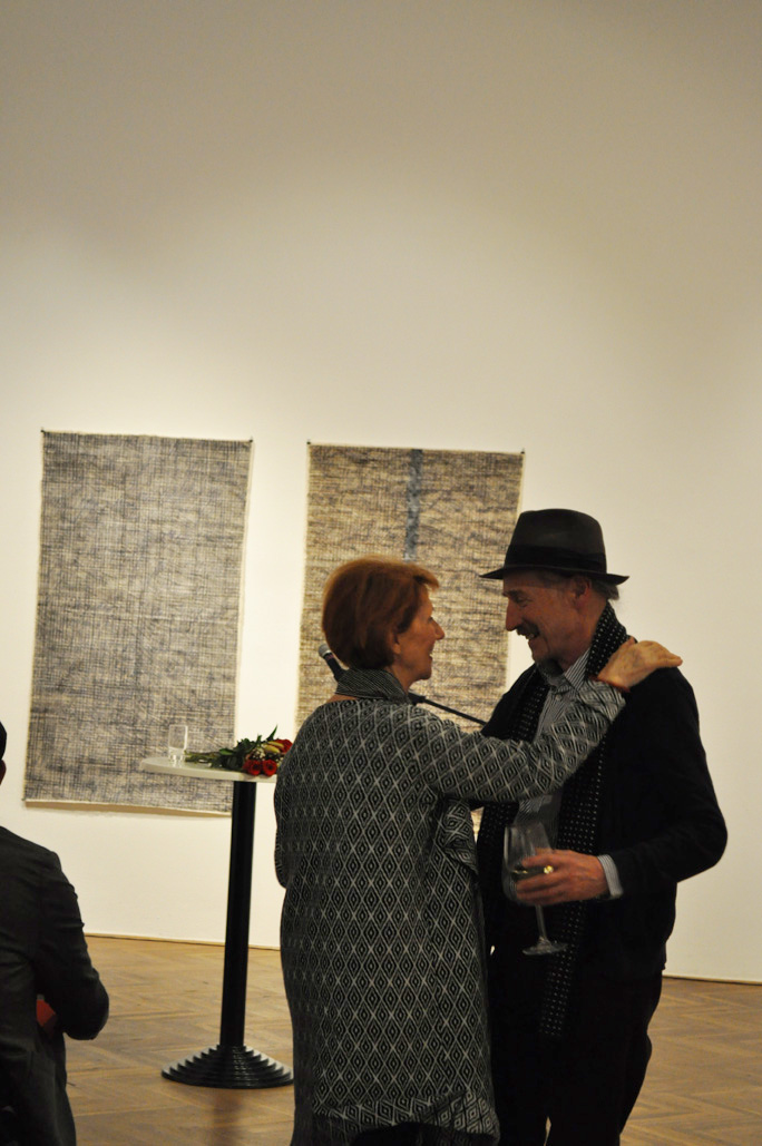 Denn für sie ist das einfache Prinzip der zwei gekreuzten Fäden so elementar, dass sie zuletzt in ihre Zeichnung dieses Prinzip in Serie nachvollzieht und damit rein visuelles „Gewebe“ dem Stofflichen aus Wolle, Leinen und Papier zur Seite stellt. Diese Konzentration auf den Prozess und Verlauf des Webens führt zu einer neuen Wahrnehmung von Zeit und ihrem Maß, von Ordnung und Experiment.