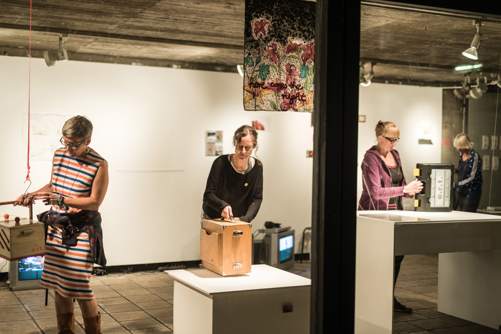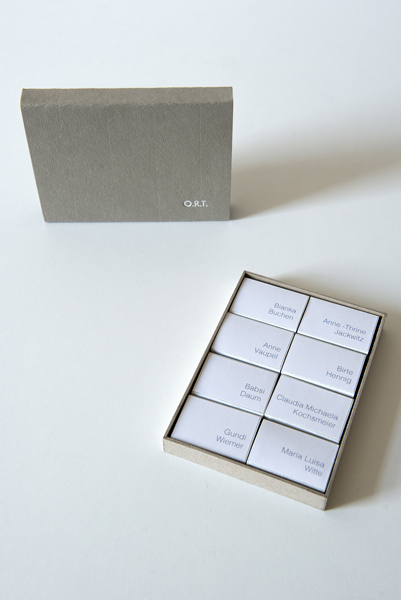 Für Ausstellungen gibt es von jeder Kuratorin eine Art Schnittmuster wie die Arbeiten aus ihrer Box präsentiert werden sollen. Als Erweiterung des Projekts wollen wir von Zeit zu Zeit Künstlerinnen einladen, eine Gästebox zu kuratieren, die somit neun Werke beinhaltet: je eines von den o.r.t.-Künstlerinnen und das der Gastkünstlerin.