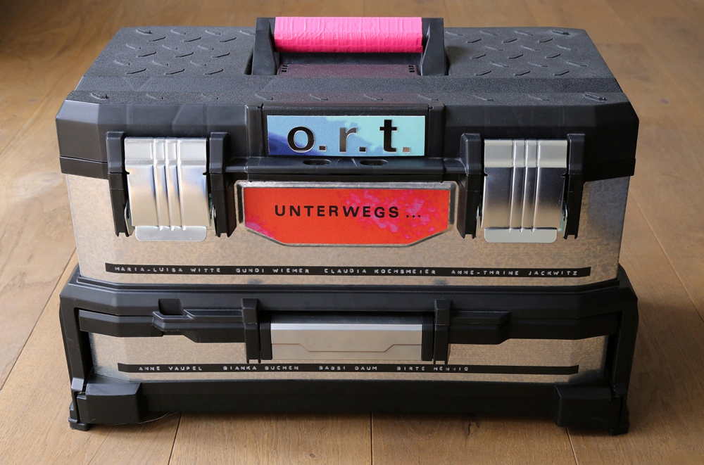 Die Idee entstand aus dem Wunsch, daß jede (von uns acht Künstlerinnen) von jeder eine Arbeit hat, die dann für mögliche Präsentationen parat wären; am besten zusammengefasst in einer Mappe,Tasche oder einem anderen tragbaren Behältnis. Da wir als Kunstschaffende auf Reisen immer ein Set von Werkzeugen/Material im Gepäck haben, das heißt der Werkzeugkoffer uns sehr vertraut ist, entschieden wir uns für Werkzeugkisten als Ausstellungsboxen.