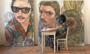 Stylianos Schicho, About the monkey on my back 1+2, 2011, Acryl und Kohle auf Leinwand