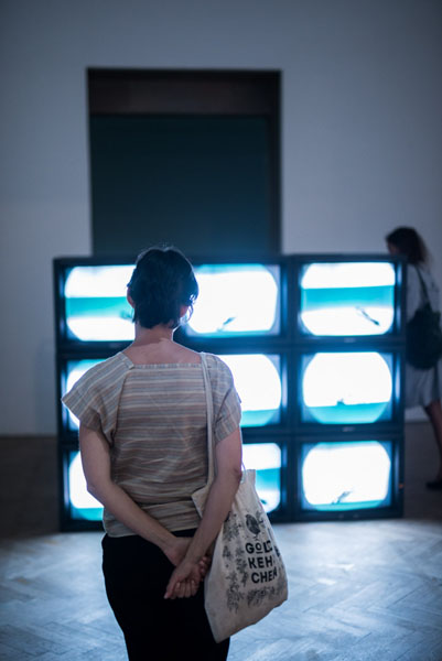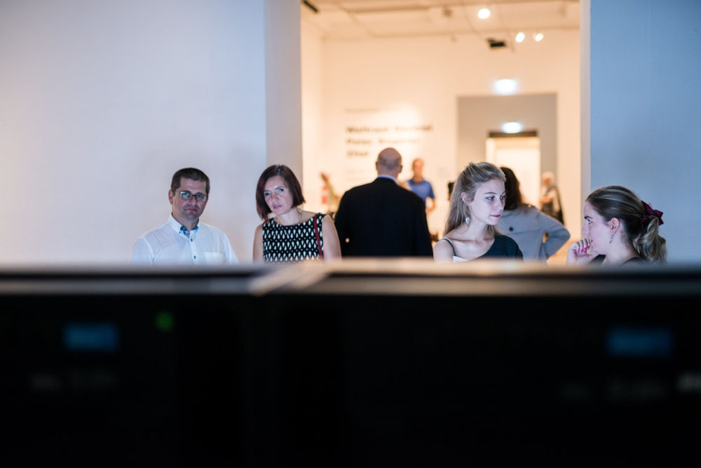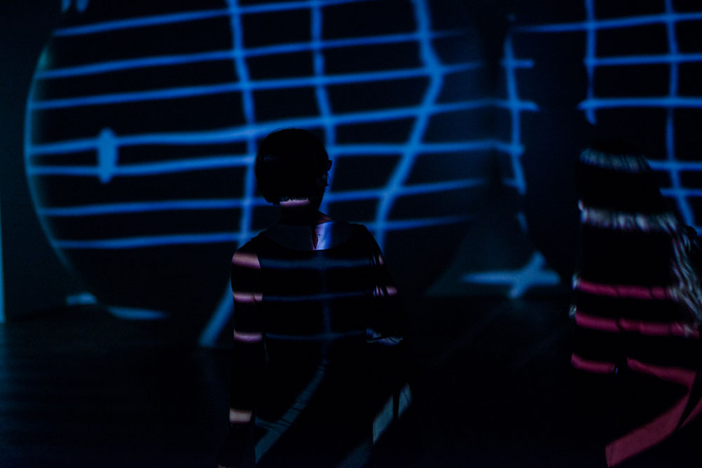 zur Physik realisiert. Die Ausstellung holt die Werke aus ihrer virtuellen Isoliertheit in einen gemeinsamen Raum: Dort entstehen Interferenzen der Bilder untereinander und mit dem Körper des Besuchers.