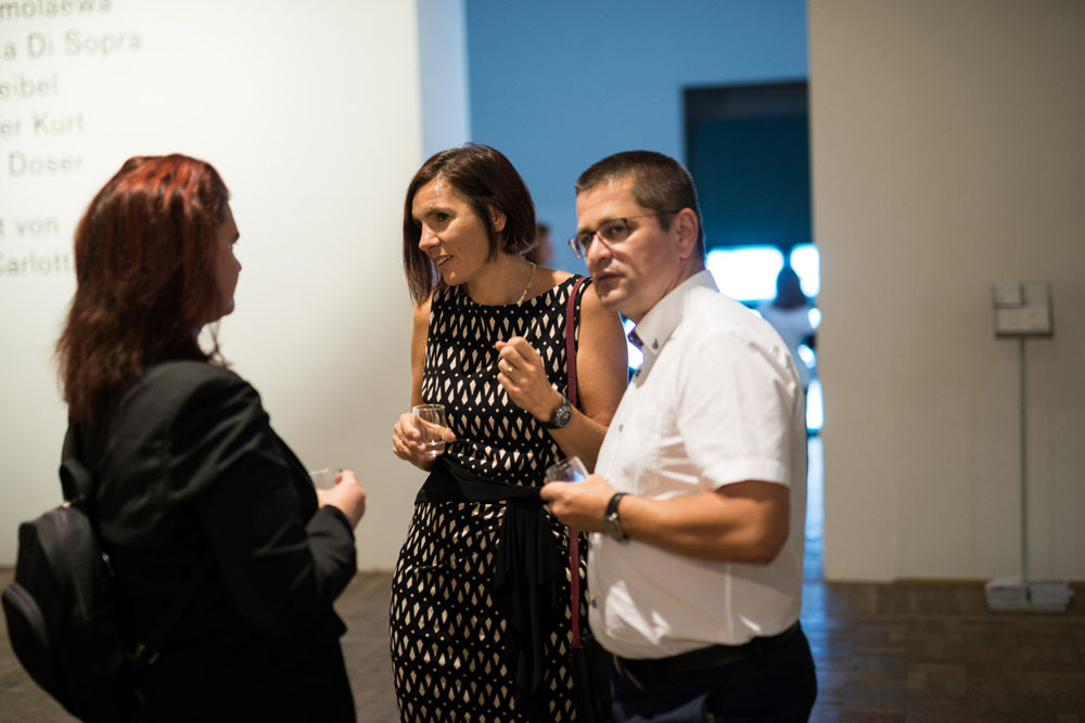 Individuum (Elisabetta Di Sopra), zwischen Individuum und audiovisueller Wahrnehmung (Hofstetter Kurt und Barbara Doser), zwischen Individuum und Raum (Peter Weibel).