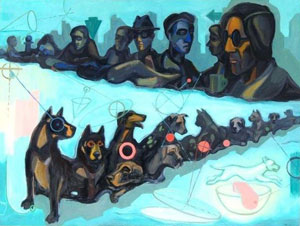 Tibor Palkó stellt Ölmalereien aus. In seinen figurativen Arbeiten entwickelt er seit vielen Jahren eine eigene Formensprache. Er gibt mit seinen symbolträchtigen und verschlüsselten Beziehungsdarstellungen dem Betrachter Rätsel auf. Häufig werden christliche Motive und Zitate aus der Kunstgeschichte verwendet.