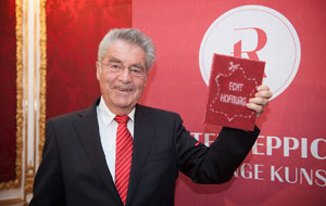 Das Künstlerhaus öffnet seine Pforten für über 40 VertreterInnen der österreichischen Kunstszene. Von 22.10.2015 bis 08.11.2015 gilt es auf über 1000m² Installationen, Gemälde, Zeichnungen, Skulpturen und Performances im Rahmen mehrerer Abendveranstaltungen zu erkunden. Gefeiert werden unter dem Ehrenschutz des Bundespräsidenten Heinz Fischer aber nicht nur die KünstlerInnen und ihre Werke, sondern auch die Erfolgsgeschichte des Roten Teppichs für junge Kunst seit seiner Gründung im Jahr 2009.