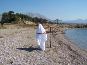In dem Video „Eleutheria in progress“ (2008) fängt Christine Gillinger die seltsame Stimmung der „Islands of dreams“ in Eretoria ein, auf der sich eine Appartmentanlage aus den 1960er Jahren befindet. Ein großer Teil der Insel dient als Müllablage. Verrostete Kinderspiele, verfallene Stiegen und ein morsches Boot zeugen von einer belebten Vergangenheit der „Island of dreams“. Eine Figur - Geist oder antike Tragödien-Figur? - erkundet die morbide Schönheit dieser Landschaft.