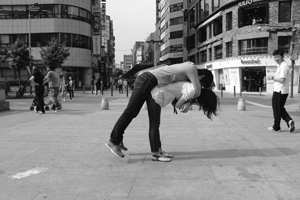 Luiza Margan: “The series of photographs ‘Anatomy of the Bow’ displays a performative action in urban space of Seoul, for which I have approached passerby couples with an explanation and a proposal to engage in a short photography action where the woman should carry the man on her back. I explained to the couples that the action’s objective is to provoke the existing hierarchies and assess the traditional roles of women and men and show their interrelation. Women, despite their initial shyness and indecisiveness—but also often despite the protective and negative reactions of their partners—were happy to take part.”