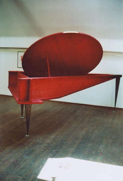 P { margin-bottom: 0.21cm; } Gert Linke, klavier, 2003, Holz, Stahl, 300 x 160 x 120 cm