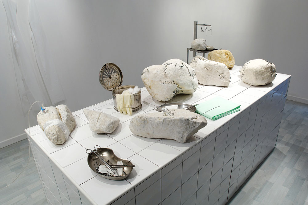 Die in der Gruppenausstellung „Andere Geschichte(n)“ vertretenen KünstlerInnen erzählen ganz unterschiedliche Geschichten, sie hinterfragen gewohnte Bilder und offenbaren neue, überraschende Blickwinkel: Geschichten über die Subjektivität der Wahrnehmung von Raum, Natur (insbesondere der Berge) und Welt treffen auf Bilder des Erinnerns, auf persönliche Fundstücke und Erlebnisse oder auch auf Erzählungen über das Scheitern und Weitermachen. Neue Blickwinkel auf Flucht und Vertreibung zeigen einzelne Menschen mit ihren Sehnsüchten jenseits der medialen Hysterie. Bilder von Bomben werden zu Blumenarrangements umfunktioniert, künstliche Organe und verletzte Steine lassen die Grenzen zwischen Mensch und Maschine, zwischen toter Materie und lebendem Organismus durchlässig erscheinen. Andere Geschichten werden schließlich auch in performativen Arbeiten dargestellt, in „Bildstörungen“, die den Körper und Umraum verschwimmen lassen, in „Körpergeschichten“, basierend auf emotionalen Zuständen, die von SpezialistInnen aus der Bewegungsanalyse weiter geschrieben und visualisiert werden.