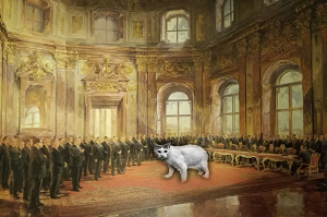 Die daraus entstehende Installation ist ein göttliches, düsteres und humorvolles Klassenzimmer, zugleich eine Kunstgalerie voller wienerischer Ornamente in Huxtrl's Kirche im vierten Stock des Künstlerhaus 1050. Huxtrl's These: der Stadt Wien fehlt ausschließlich das Meer.