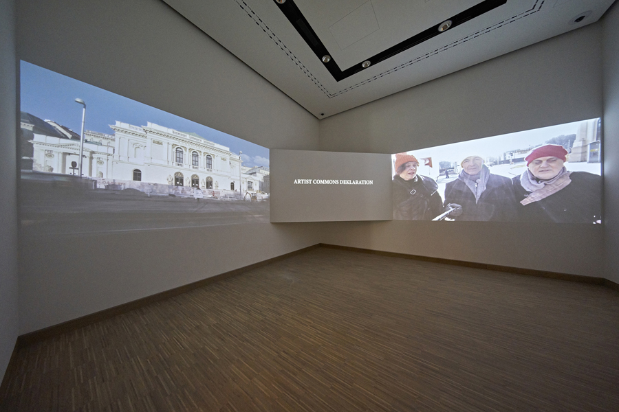 ALLES WAR KLAR thematisiert, wie sich die institutionellen Routinen über die letzten 150 Jahre der Geschichte des Künstlerhauses immer wieder hinterfragen lassen. Die Besucher*innen werden auf einen Rundgang durch insgesamt sieben Ausstellungsräume eingeladen, der einer sorgfältig entwickelten Dramaturgie folgt. Ein Zyklus der Metamorphose und zugleich Katharsis der neu zu etablierenden Institution wird sich schließen, bis sich die Unterscheidung und Wertigkeit von Vergangenheit und Zukunft allmählich auflöst. Den Besucher*innen liefert die Ausstellung sowohl intellektuell herausfordernde Kontexte wie auch unmittelbare, sinnliche Wirkungen.