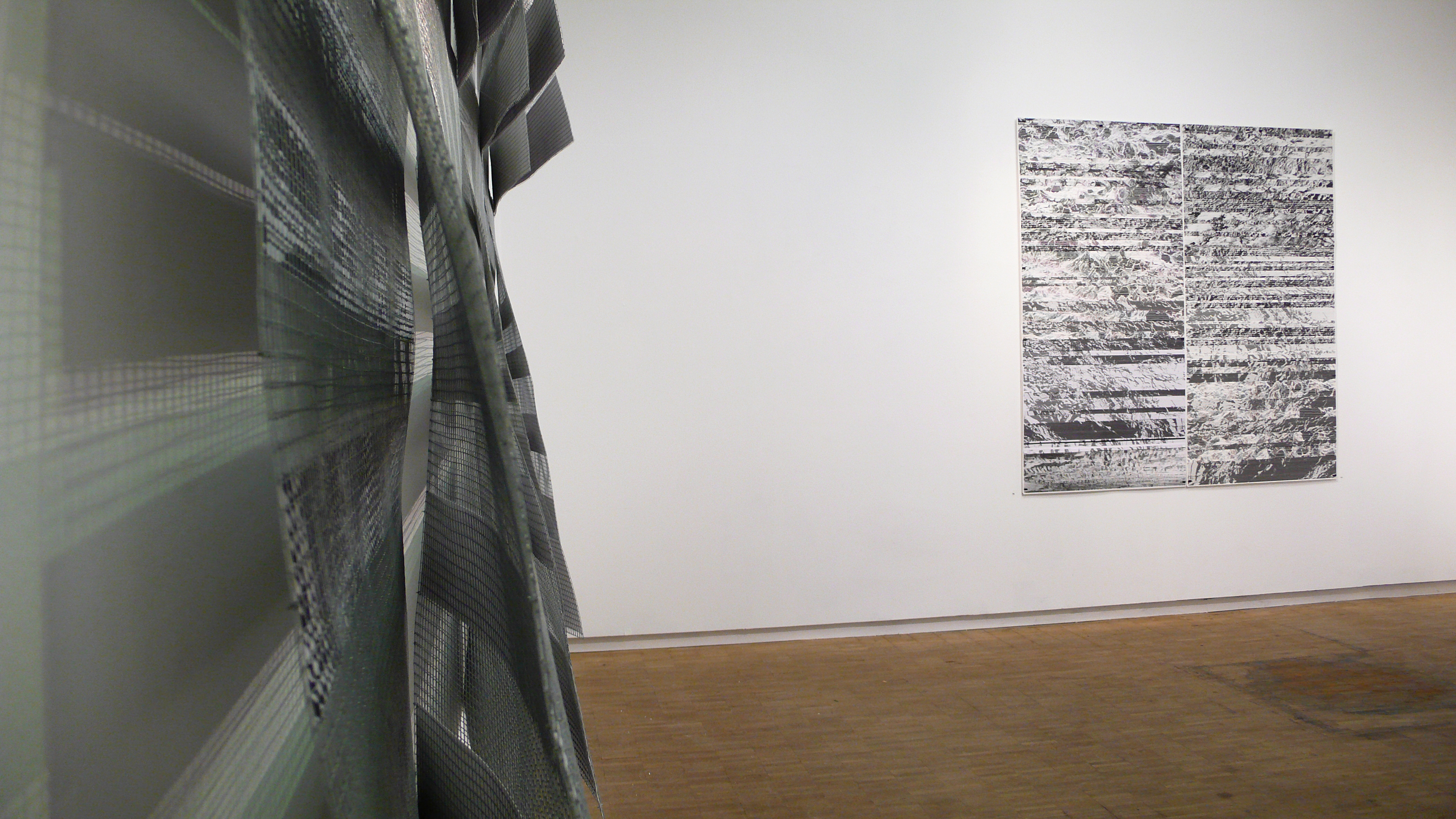 Die Erweiterungen des Bildes zum Bild-Raum, Klangraum, Sprachraum Krzywobłocki setzt seine Bilder in Beziehung zu industriell gefertigten Metallgittern, die mit ihrer 1x1 cm Rasterung die Funktion von Filtern erhalten. Durch das Gitter betrachtet scheinen dahinter liegende grafische Strukturen reduziert, einer technisch-mathematischen Ordnung unterworfen. Aus der Interferenz des Gitters mit den Strukturen der dahinter liegenden Bilder ergeben sich Störungen, Vibrationen, Flimmern, Bewegung.