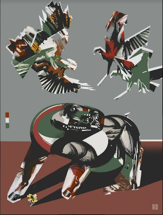 Nineteen authors representing paintings, graphics, video, digital art, sculpture, and installation are invited to participate in the exhibition. Most artists do not try to reflect events literally. There are mass media for this because our war is the first that is happening online, literally in front of the eyes of the whole world. Thus, the painter Bohdan Burenko chooses to record sensations frozen in space and time. With the help of images of the animal world, he creates a freeze-frame of a fierce battle. It is a moment of bated breath, and the disturbing colors and jagged lines convey the tension of anticipation. A lot is already behind. What will be the final?