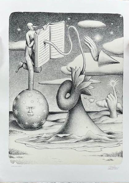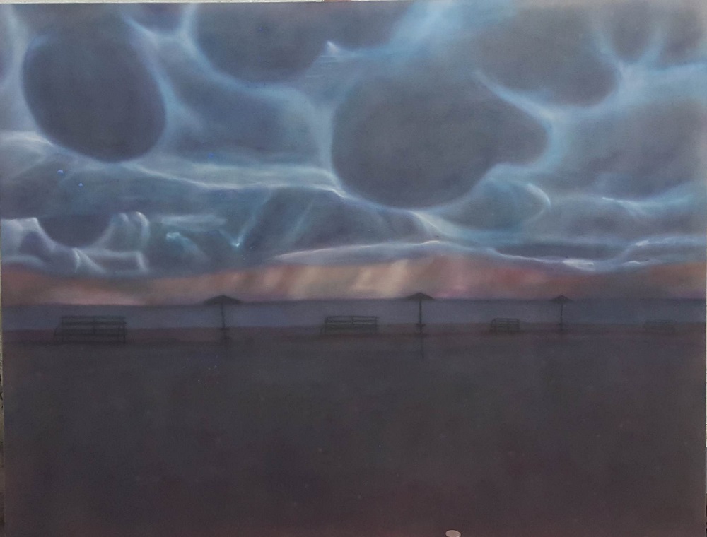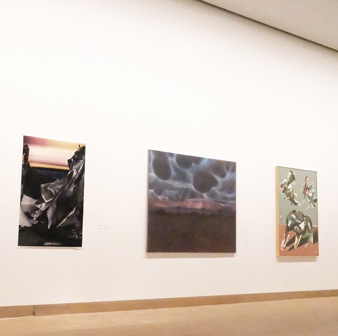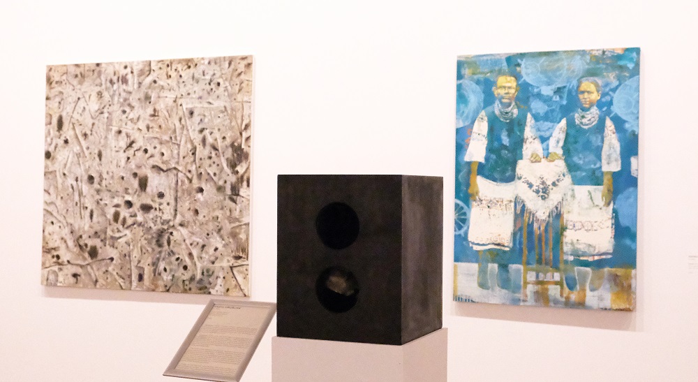 The graphics "Dawn" by Stepan Ryabchenko from Odessa is life-affirming and powerful. At the exhibition, it is complemented by the already famous sculpture of the author - "Walking Cloud." These two works are related. The three-meter painting depicts dawn - the time when the darkness will disappear, the time we long for. Dawn is like a new norm of life, where such a concept as war does not exist at all. And the sculpture creates a conditional visual transition of this image from a plane to a three-dimensional space.