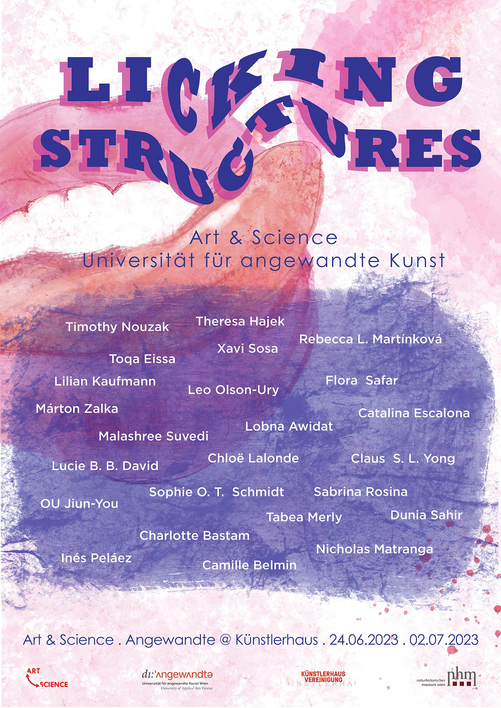 LICKING STRUCTURES creates an interdisciplinary space in which the artworks explore both literally and metaphorically the concept of dissolving orders. The 24 artists utilize their personal perspectives to create, broaden or reimagine institutional frameworks and embedded dichotomies in an intimate way. We invite visitors to come in contact with the sensorial through symbols on the labels, indicating which sense to use to appreciate the artwork.