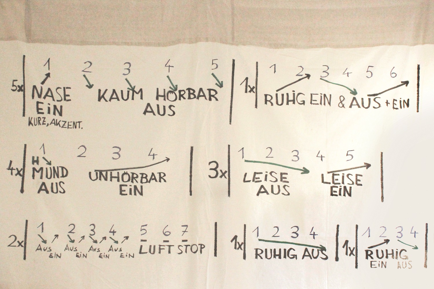 © Bruno Pisek - Einatmen Ausatmen, 2015, Filzstift auf Baumwolle, 199 x 78 cm