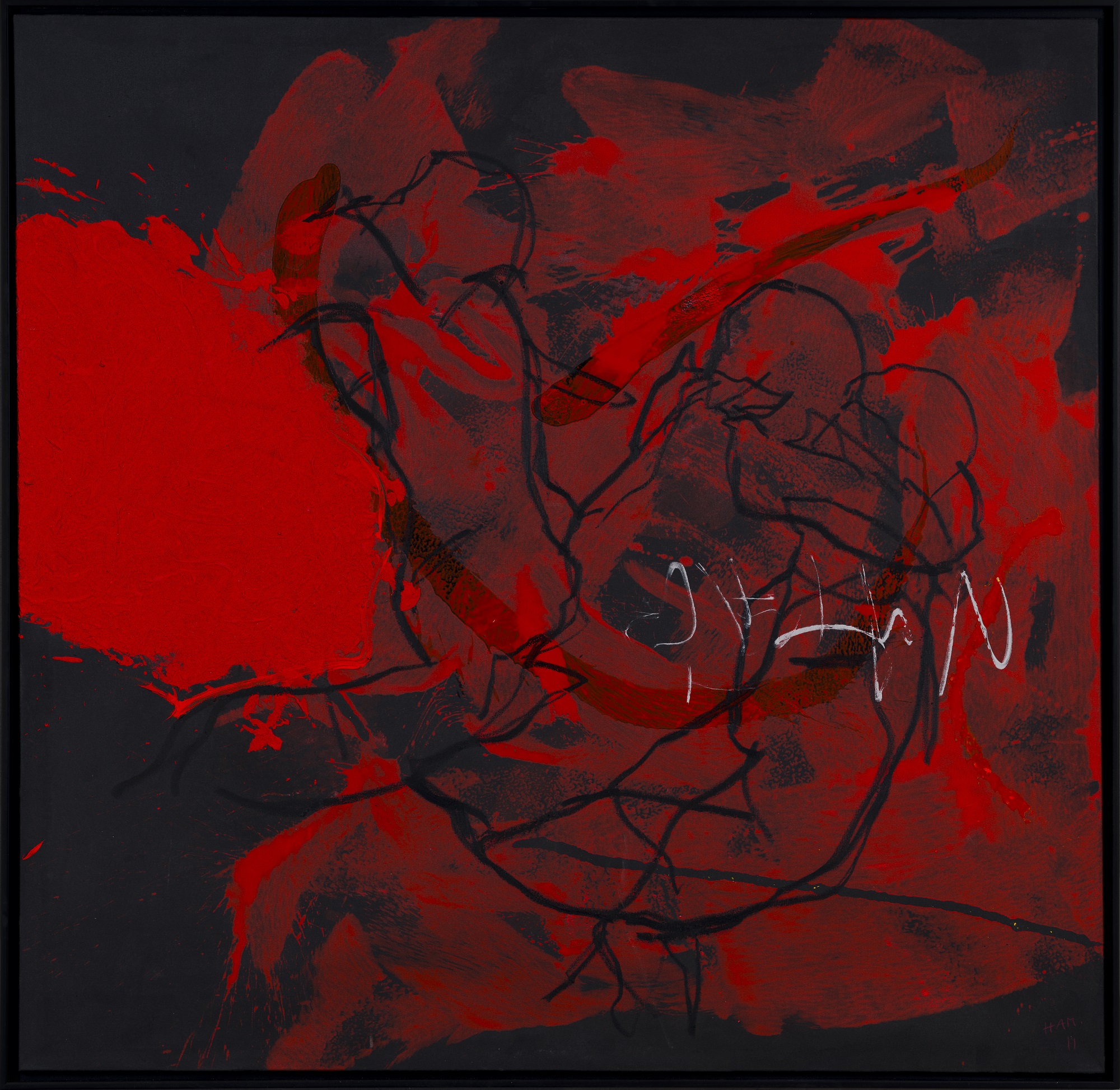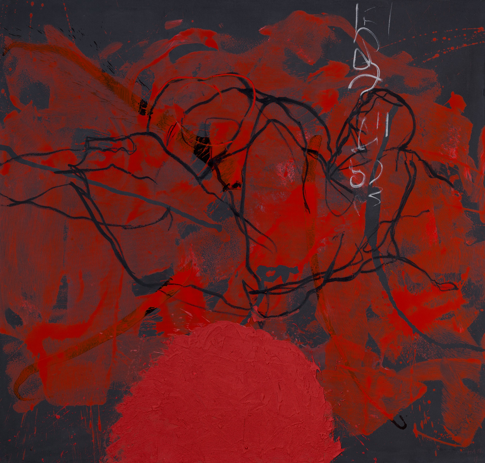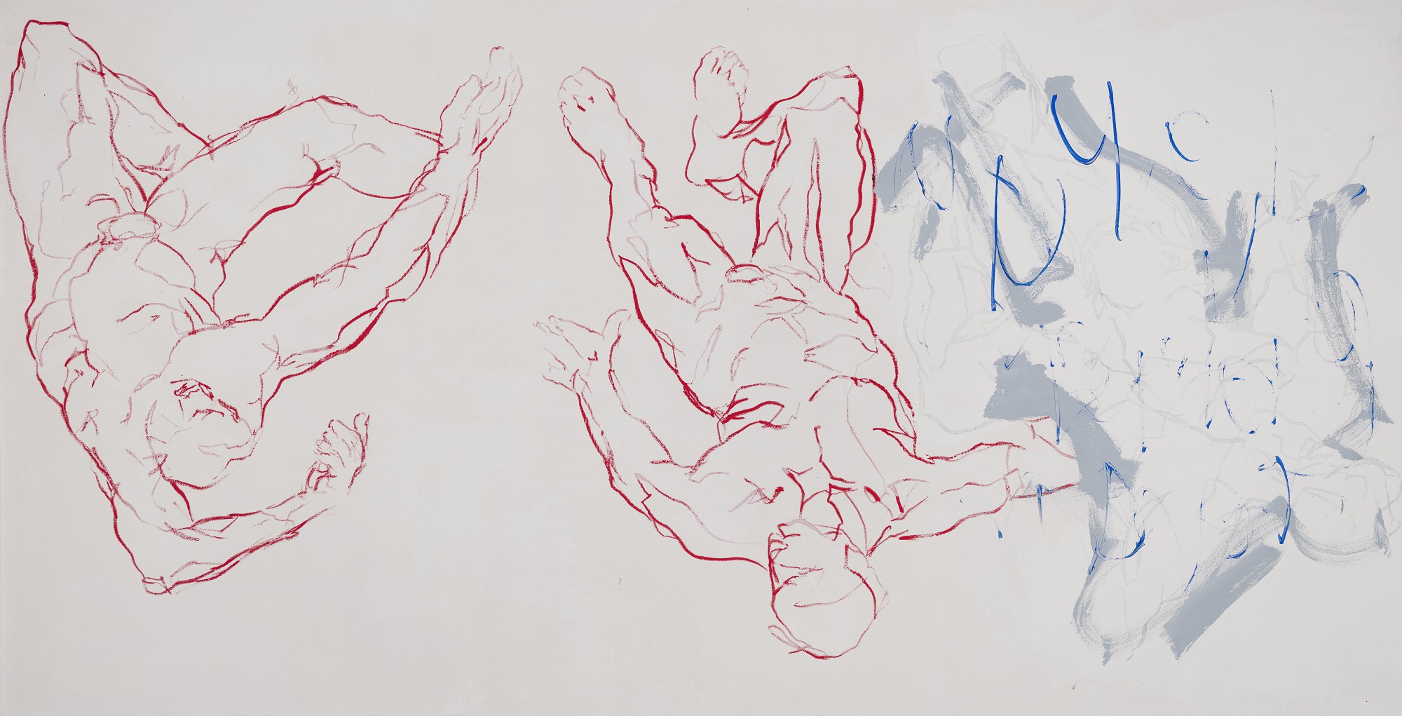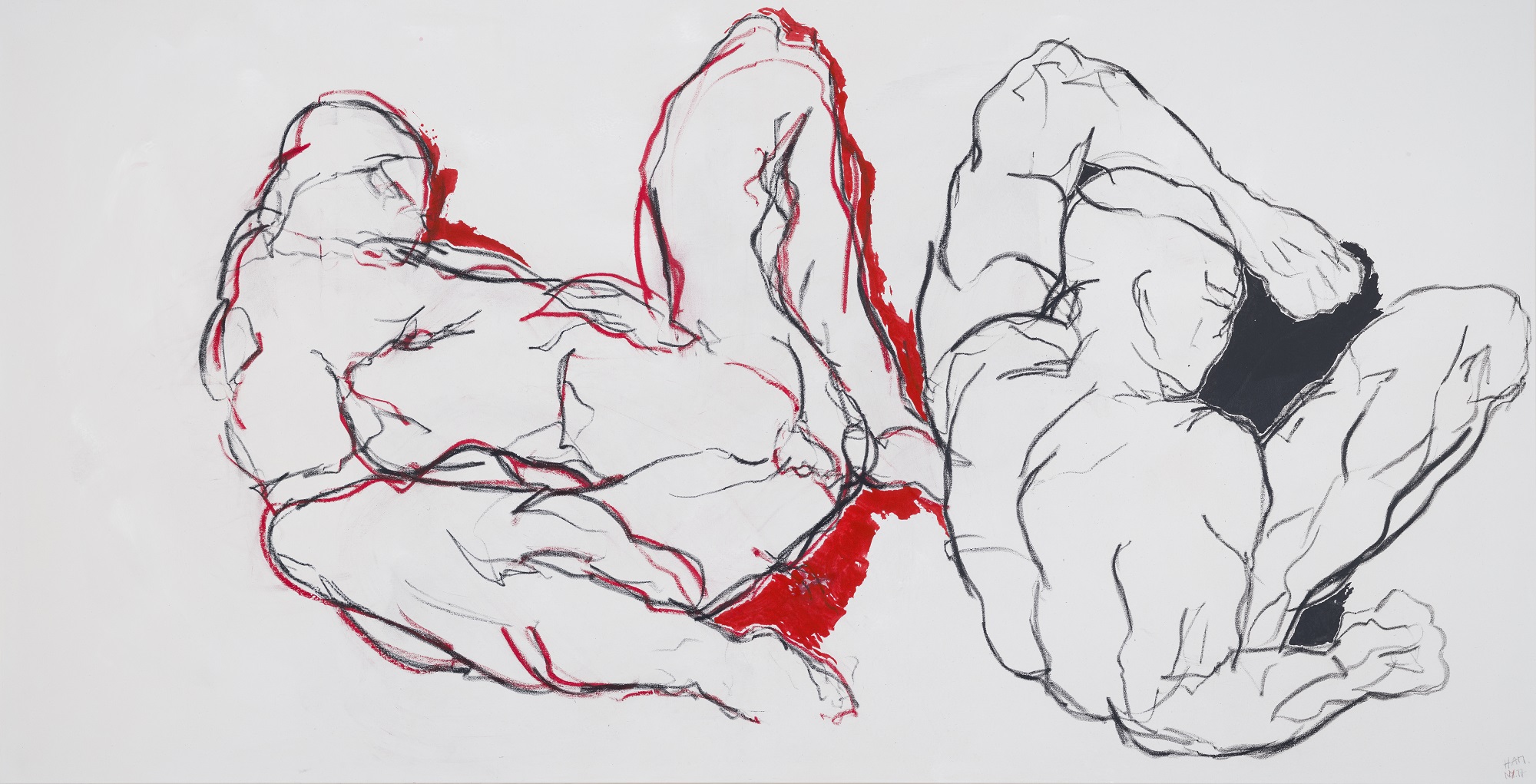 Hannes Mlenek ist ein malender Zeichner und zeichnender Maler und ein Meister seines Fachs. Die Linie ist das durchgängige Stilmittel seiner Bildschöpfungen, der menschliche Körper das zentrale Thema. Die Werke stehen im Spannungsfeld einer körperhaften Malerei und einer gestisch-abstrakten Linienführung. Mit expressiv-kraftvollem Ausdruck zeichnet er schemenhafte, fragmentierte Körperformen, die gekonnt den Grenzbereich zwischen Figuration und Abstraktion ausloten. Seinen eigenen Körper nimmt er stets als Medium wahr. Mit klarer, reduzierter Farbgebung interpretiert er zwischenmenschliche Beziehungen ebenso wie Energieimpulse oder Bewegungen im Raum. „Ich mache nur Männerkörper, weil ich mit meinem Körper machen kann, was ich will, weil ich ihn verzeichnen, zerstören kann“, so der Künstler.