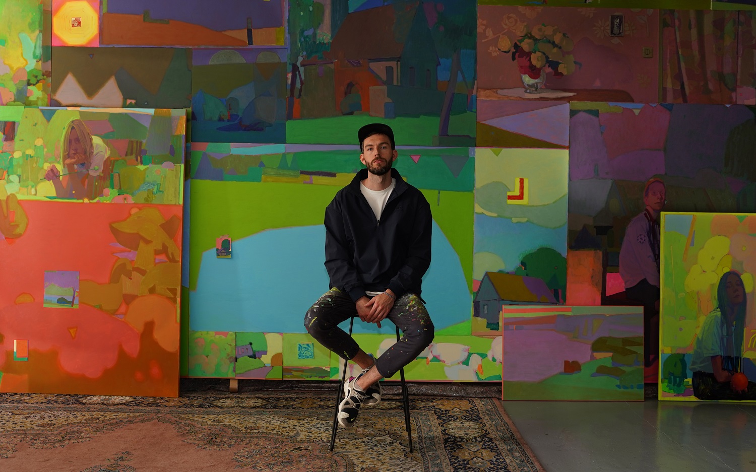 Przemysław Blejzyk alias Sainer überwindet die traditionellen Vorstellungen von Komposition und Raum und versteht seine Werke als Fragmente eines größeren Ganzen, in dem die Betrachter*innen zum Mittelpunkt werden. Inmitten eines Kaleidoskops von Formen und Farben suchen sie sich einen Weg durch die Ausstellung und lassen sich dabei von den verschiedenen Farbtönen leiten, die als wichtigstes erzählendes und verbindendes Element fungieren. Die Farben erzeugen dynamische kompositorische Schleifen, die den Blick von Werk zu Werk lenken; ihre Beziehungen bilden ein komplexes Netz visueller Verbindungen, die das Wesen eines solchen „Kolorganism“ ausmachen. Die Ausstellung ist ein einzigartiger Versuch, die Kunst als einen lebenden, pulsierenden Organismus zu zeigen. In diesem künstlerischen Ökosystem existiert kein Bild für sich allein. Stattdessen steht jedes Bild mit den anderen in Wechselwirkung und ergibt mit ihnen ein komplexes und harmonisches Ganzes.