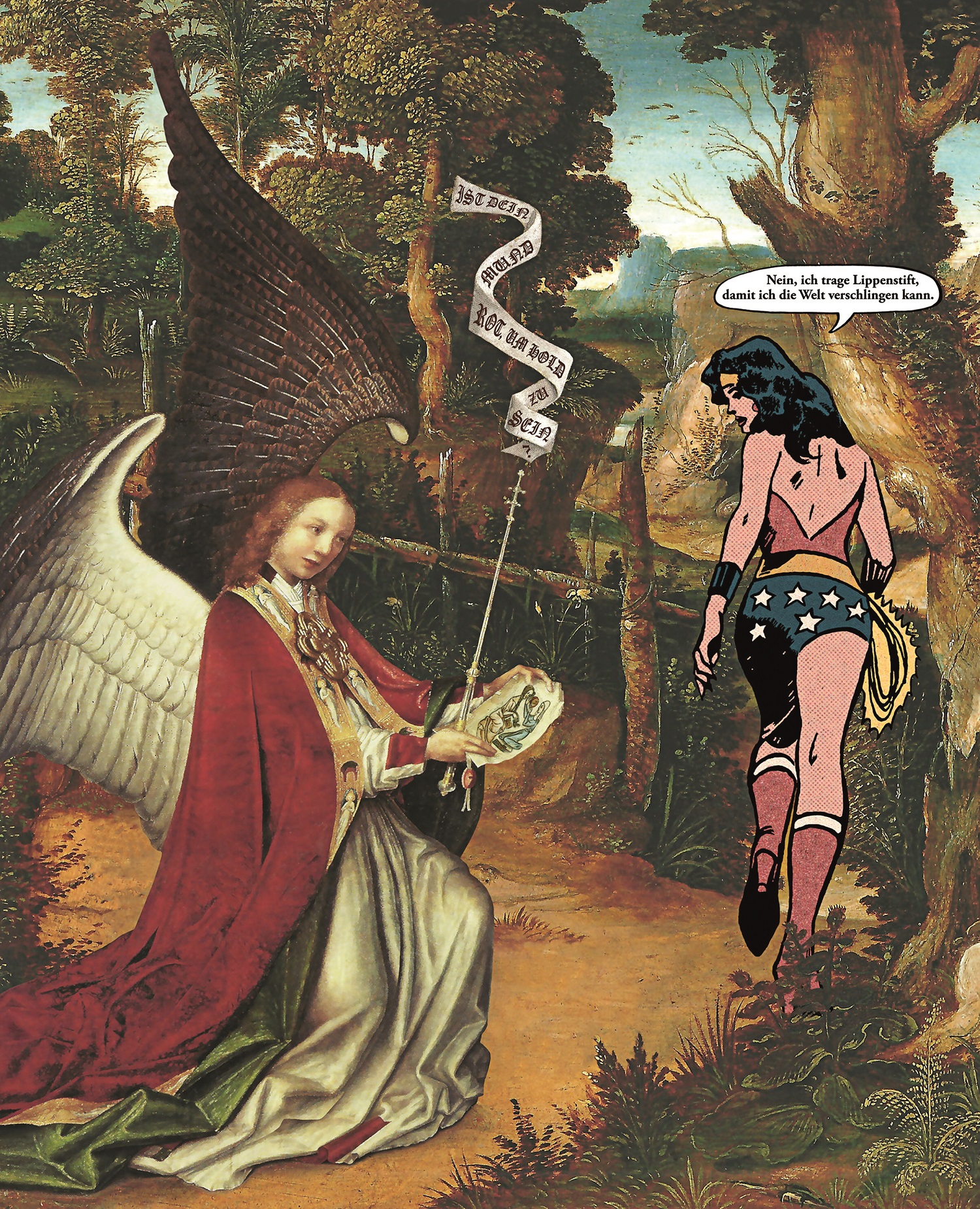 In den GEDANKEN EINER AMAZONE, einer Serie von Wilfried Gerstel, wird die Superheldin Wonder Woman Bildzitaten aus diversen historischen Gemälden gegenübergestellt. Die Begegnung dieser beiden Bilderwelten eröffnet neue Interpretationsmöglichkeiten für die zitierten Werke wie auch für die Rolle der Comic-Heldin als Frau in der Gesellschaft.