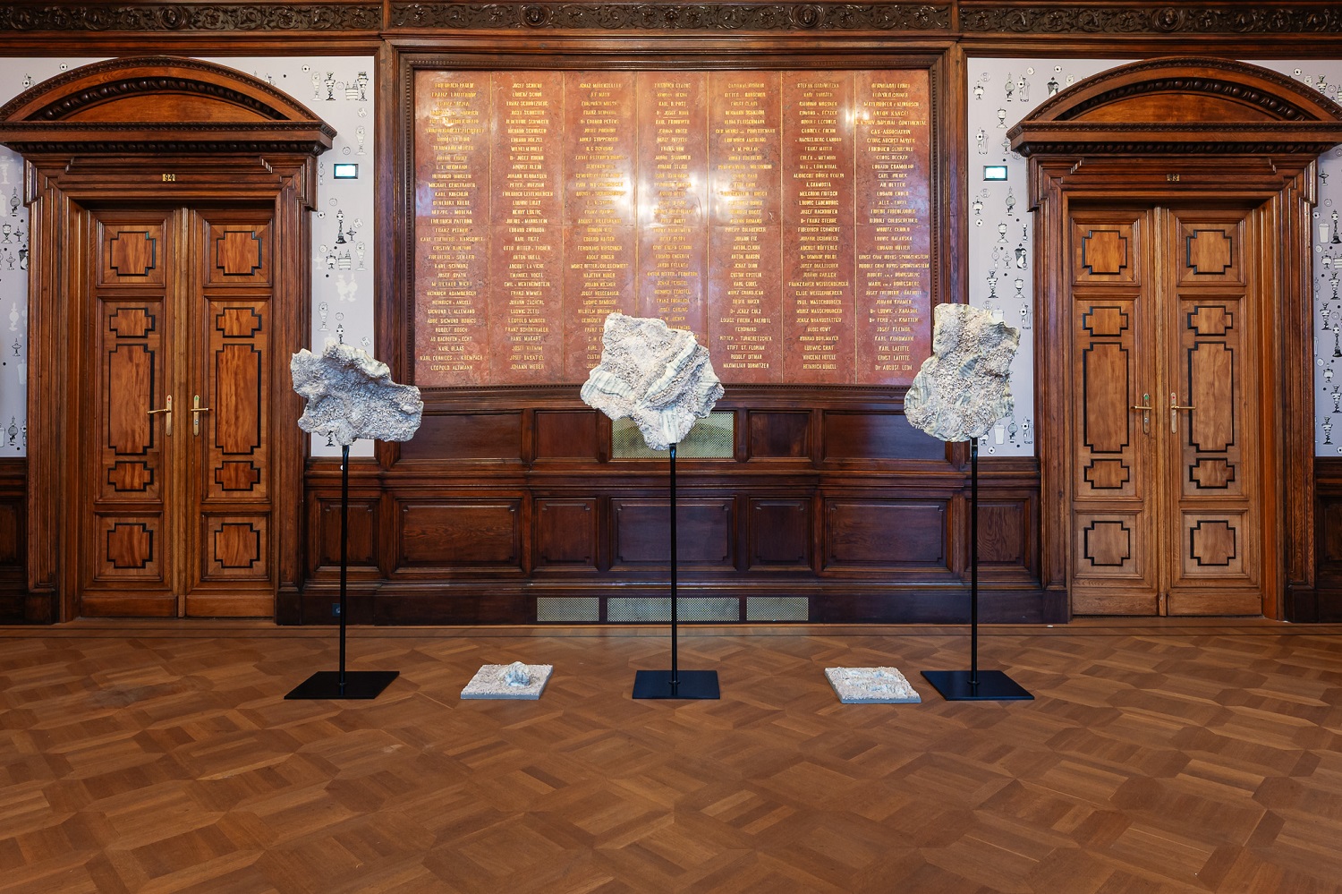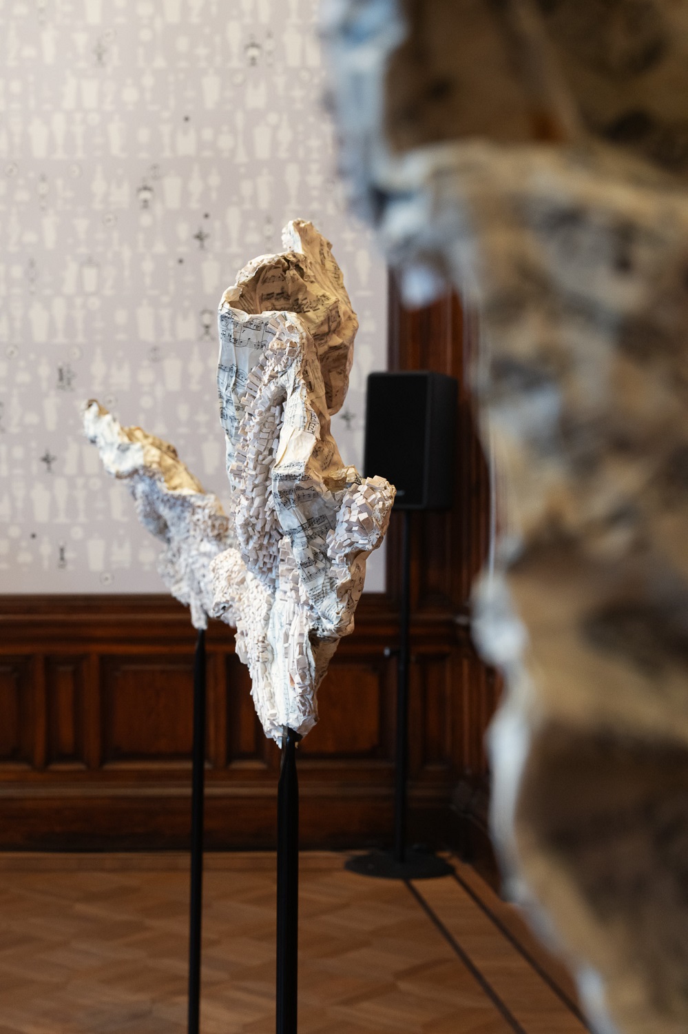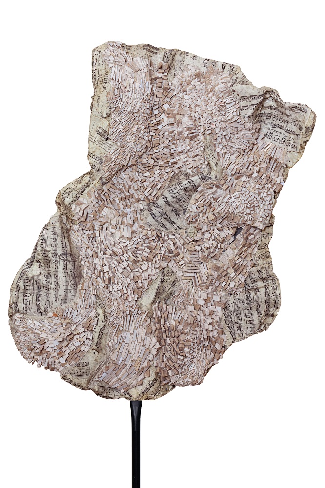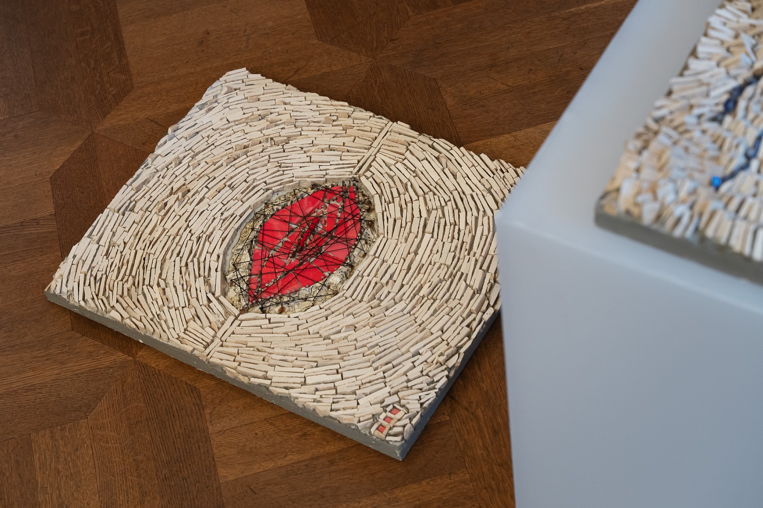 Die Ausstellung zeigt 13 Arbeiten von Stefania Bolognese aus drei Werkblöcken, in denen die Mosaiktechnik auf die Bildhauerei angewendet wird und sich zeitgenössischen Experimenten öffnet: Hommage an Bach: Englische Suite Nr. 2, Hommage an Hindemith – Ludus tonalis: Die Farben der Musik und Labyrinthe des Geistes.