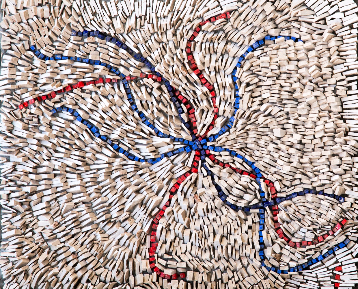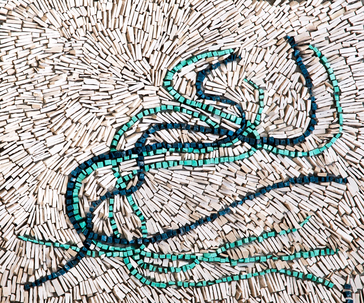 Musik ist nicht statisch. Sie bewegt sich, sie verändert sich und entwickelt sich weiter, genau wie das Leben. Jedes Steinchen meines Mosaiks, also jede Note des Stücks, das ich untersuche, ist eine Emotion: Eine Niederlage könnte durch eine melancholische Mollharmonie dargestellt werden; der Wunsch, weiterzumachen, schlägt sich dagegen in einem unaufhaltsamen Crescendo nieder, in einem starken, entschlossenen Rhythmus, der vorwärtsdrängt. Meine Musik – mein Mosaik – erzählt eine Geschichte, und wer meine Werke betrachtet, ist eingeladen, sein eigenes emotionales Geflecht zu weben und seine eigenen Freuden und Niederlagen zu erkennen, auch seine innere Stärke. Die Mosaiksteine aus Marmor und Glas vermitteln perfekt die Idee der Bewegung und machen langsam die Übersetzung des Musikstücks in Mosaik sichtbar.“