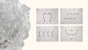 Bei beiden Künstlerinnen spielt Literatur als Inspiration eine große Rolle, wird Schrift und Text oft als gestalterisches Mittel eingesetzt, doch sichtbar bleibt manchmal nur ein Gedankenstrich.