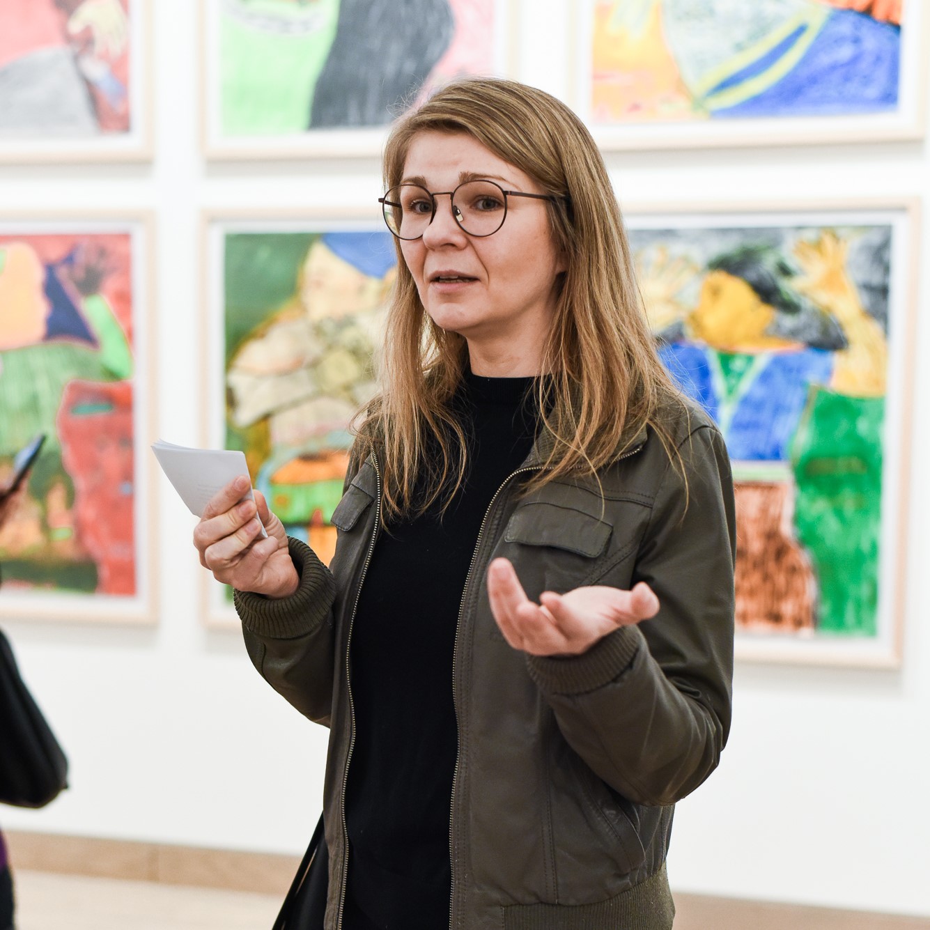 Kuratorin Ana Hoffner ex-Prvulovic* erläutert auf ihrem Rundgang Hintergründe, Entstehungsgeschichte und Themen der Ausstellung.