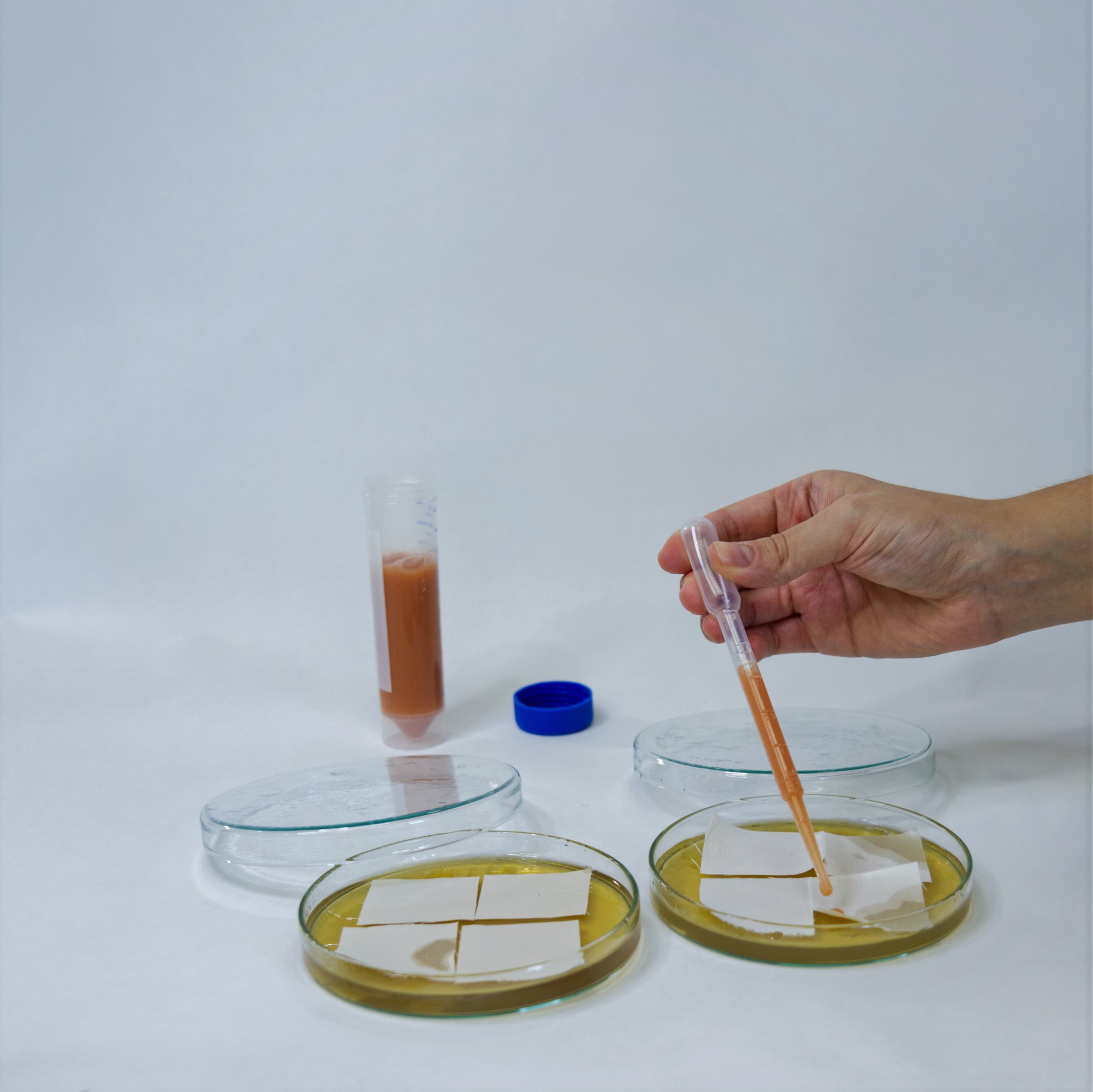 Im zweiten Teil des Workshops beschäftigen wir uns mit dem Färben von Textilien: Wie ist es möglich, industrielle Prozesse durch nachhaltige und umweltfreundliche Verfahren zu ersetzen? Grundzüge dieser Idee, sowie technologisches Hintergrundwissen werden vermittelt. Zum Färben der Textilien werden spezielle Hefen kultiviert.