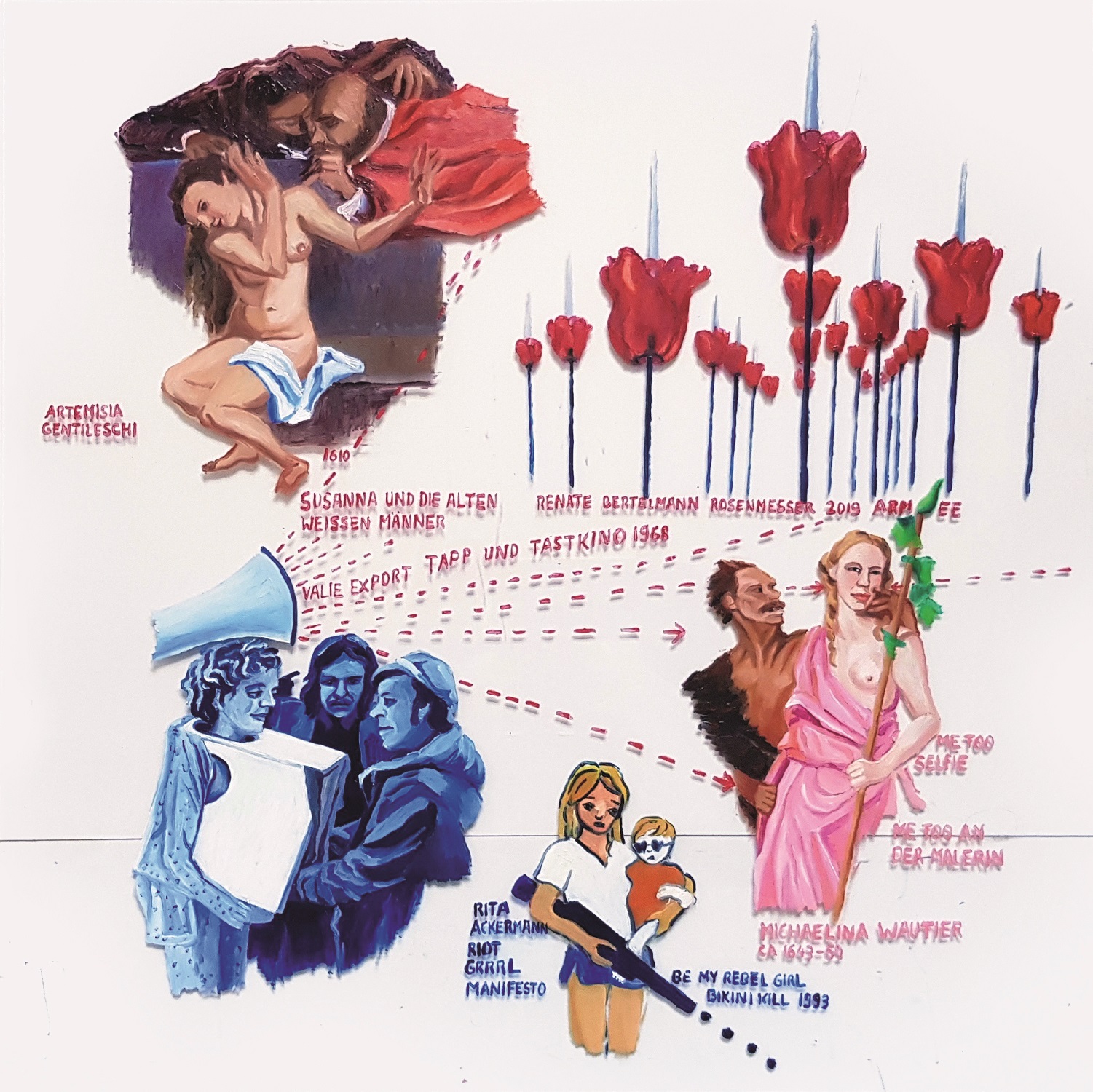 In jüngerer Zeit trat das künstlerische Schaffen von Frauen verstärkt an die Öffentlichkeit – ebenso wie die Hindernisse, die Künstlerinnen einst viel stärker als heute überwinden mussten. Im 21. Jahrhundert mangelt es Künstlerinnen jüngerer und mittlerer Generationen nicht mehr an Role Models. Wie reflektieren Künstlerinnen einer jüngeren und mittleren Generation heute weibliche Kreativität? Wie schreiben sie sich mit ihrer eigenen künstlerischen Arbeit in eine Genealogie ein? Wie ist ihr Blick auf jene, die lange Zeit von der Geschichtsschreibung ignoriert, vergessen oder sogar aktiv aus der Erzählung verbannt wurden? Wie setzen sie sich ins Verhältnis zu ihren Vorfahrinnen und Vorkämpferinnen, zu jenen, die in der bildenden Kunst, aber auch in anderen künstlerischen Sparten tätig waren? Die Ausstellung AUF DEN SCHULTERN VON RIESINNEN beleuchtet Fragen wie diese.
