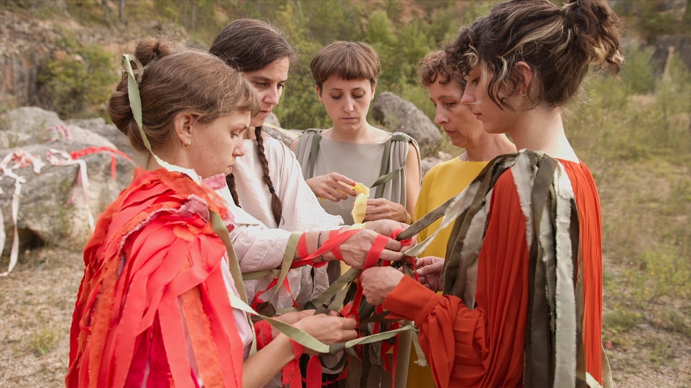 Von Menschen dargestellte Vögel berichten von ihrem Aussterben und vom Verschwinden der biologischen Vielfalt. Was zunächst an einen Trauergesang auf die unzähligen Vogelstimmen erinnert, die wir aufgrund der Ausbeutung der Natur nicht mehr hören können, verwandelt sich in Michaela Schwentners re-BIRDING in eine Federkleid tragende Utopie des friedvollen Zusammenlebens. Assoziationen an die Naturforschungen der US-Philosophin Donna Haraway werden wach, wenn von Repräsentantinnen dargestellte Vögel von ihrem Aussterben berichten, aber auch von den Menschen, die durch das Verschwinden der biologischen Vielfalt letztlich sich selbst schaden. Schließlich verweben sich die unterschiedlichen Stimmen zu einem Chor, um nach Lösungen zu suchen, das Vogelsterben einzudämmen. Dabei verweist die Inszenierung auf Mechanismen der Ausbeutung durch Kolonialismus wie durch den gewaltvollen Eingriff in die Natur. (Patrick Holzapfel)
