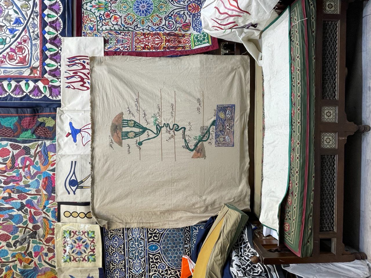 Die gemeinsamen Arbeiten von Bitter und Weber und Huda Lutfi beziehen sich auf historische arabische kartografische Materialen und traditionelle textile Objekte der Alltagskultur, um Perspektiven auf die Stadt Kairo zu verschieben und urbane Dynamiken und Texturen einer möglichen Zukunft zu skizzieren.
