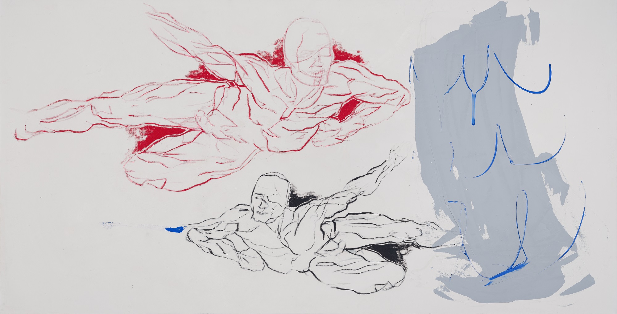 Hannes Mlenek ist ein malender Zeichner und zeichnender Maler und ein Meister seines Fachs. Die Linie ist das durchgängige Stilmittel seiner Bildschöpfungen, der menschliche Körper das zentrale Thema. Die Werke stehen im Spannungsfeld einer körperhaften Malerei und einer gestisch-abstrakten Linienführung. Mit expressiv-kraftvollem Ausdruck zeichnet er schemenhafte, fragmentierte Körperformen, die gekonnt den Grenzbereich zwischen Figuration und Abstraktion ausloten. Seinen eigenen Körper nimmt er stets als Medium wahr. Mit klarer, reduzierter Farbgebung interpretiert er zwischenmenschliche Beziehungen ebenso wie Energieimpulse oder Bewegungen im Raum. „Ich mache nur Männerkörper, weil ich mit meinem Körper machen kann, was ich will, weil ich ihn verzeichnen, zerstören kann“, so der Künstler.
