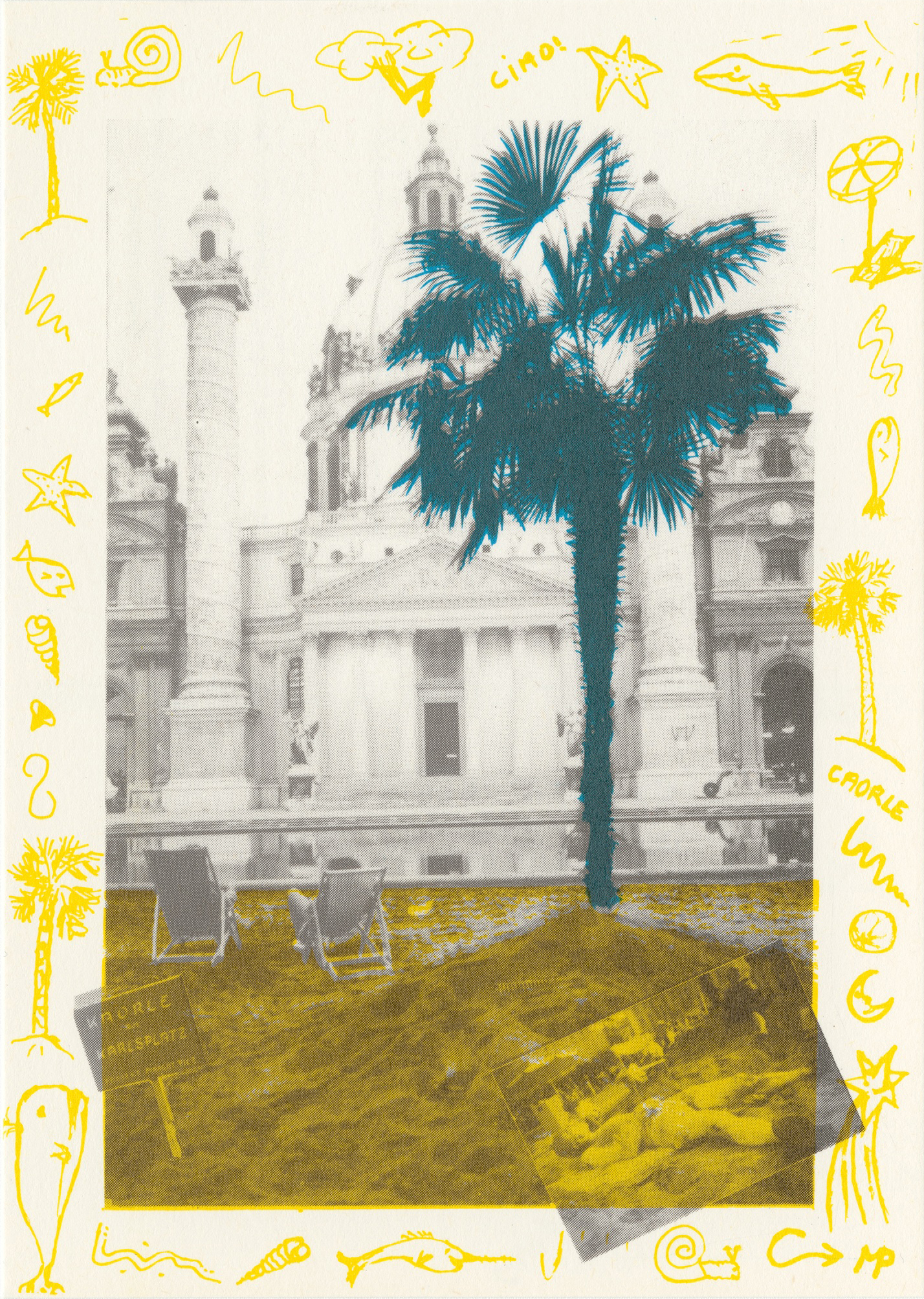 „Das erste Mal Sandstrand in einer Stadt – 1982! Eine soziale Skulptur und ein sinnliches Projekt im Rahmen der Wiener Festwochen, von den BewohnerInnen begeistert genutzt“, steht auf der Website von Margot Pilz über "Kaorle am Karlsplatz" (1982) zu lesen. Es ist eines der Lieblingsprojekte der Künstlerin und noch heute vielen Wiener*innen in lebhafter Erinnerung. Pilz ließ ganze Lkw-Ladungen Sand rund um den Karlsplatzbrunnen aufschütten, sie lieh sich eine Palme aus und holte Liegestühle von Ikea. Eine Pionierleistung und eine ebenso außergewöhnliche wie visionäre Intervention im städtischen Raum. (Auszug aus dem Katalogbeitrag von Günther Oberhollenzer für die Ausstellung (K)EIN MENSCH IST EINE INSEL)