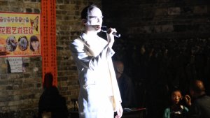 Die Performance vermischt räumliche und zeitliche Ebenen – Schubert, in die Gegenwart geholt, in einem falschen Körper, oder Schmesiér in der Vergangenheit? Synthesizer und Bassgeflüster statt Klavier und Bariton? In der surrealen Verfremdung treffen die unterschiedlichen Identitäten mit Referenz an Werner Schwarzkogler, Klaus Nomi, sowie an die Tradition der Szechuan- oder Pekingoper vor einem ebenso fremden Hintergrund in Erscheinung. Der öffentliche Raum dient als Kontrastmittel, durch das sich die verschiedenen Identitäten unterschiedlich erschließen.