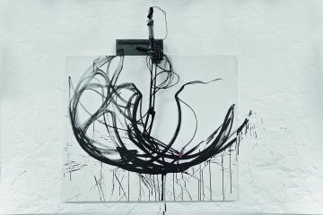 Einem Dirigenten gleich, mit Bewegungen der Hand das gewünschte innere Wesen der Komposition an das Orchester vermittelnd, versucht diese robotisch-symbiotische Anordnung Menschliches durch Maschinelles darzustellen. Die Spuren dieser Bewegungen über die Zeit hinweg werden in die Leinwand eingeschrieben.