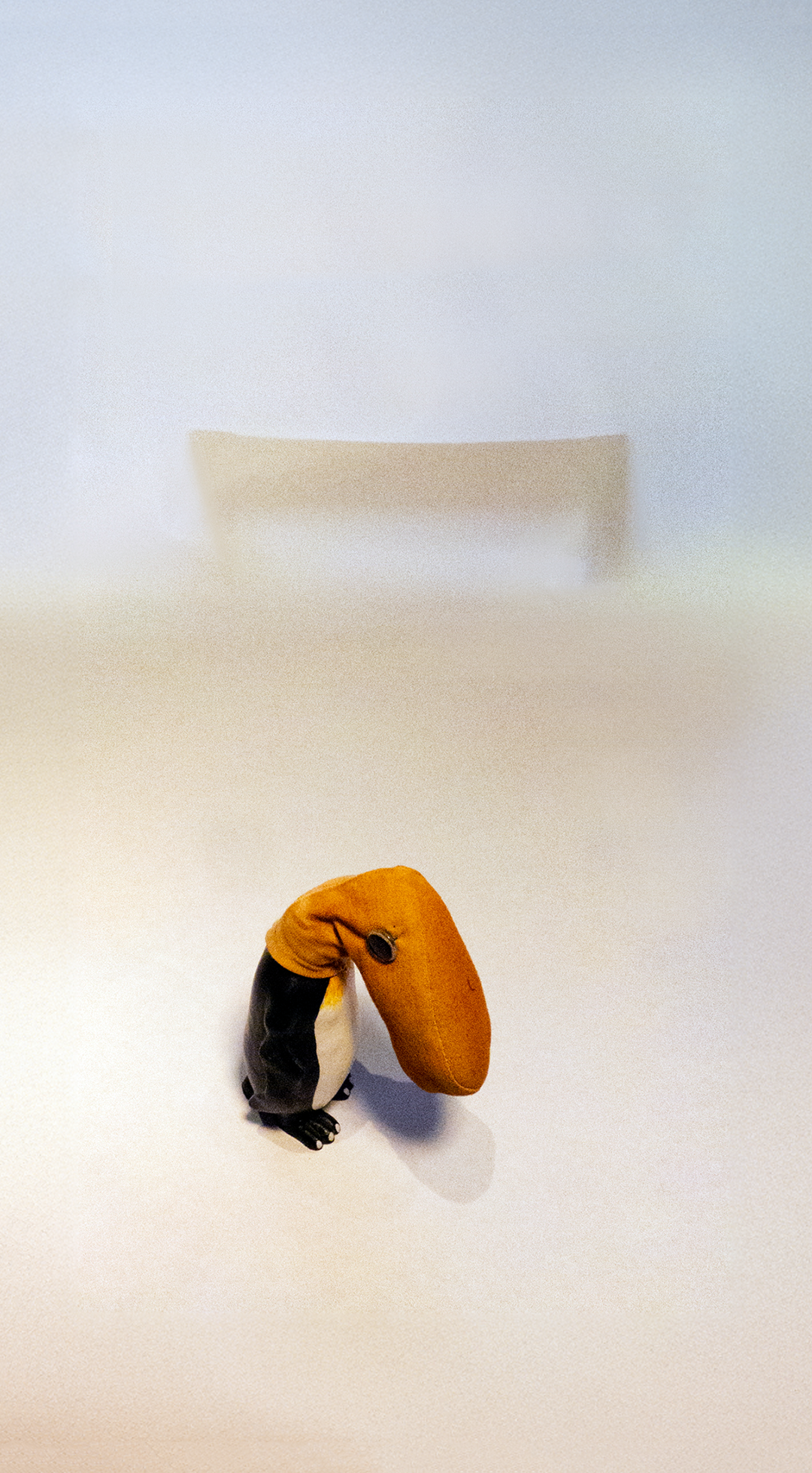 AnaMaria Heigl, Kopflastig, 2014, Marmormehlguss, Stoffschuh, Glasauge, 12 x 6,5 x 4 cm