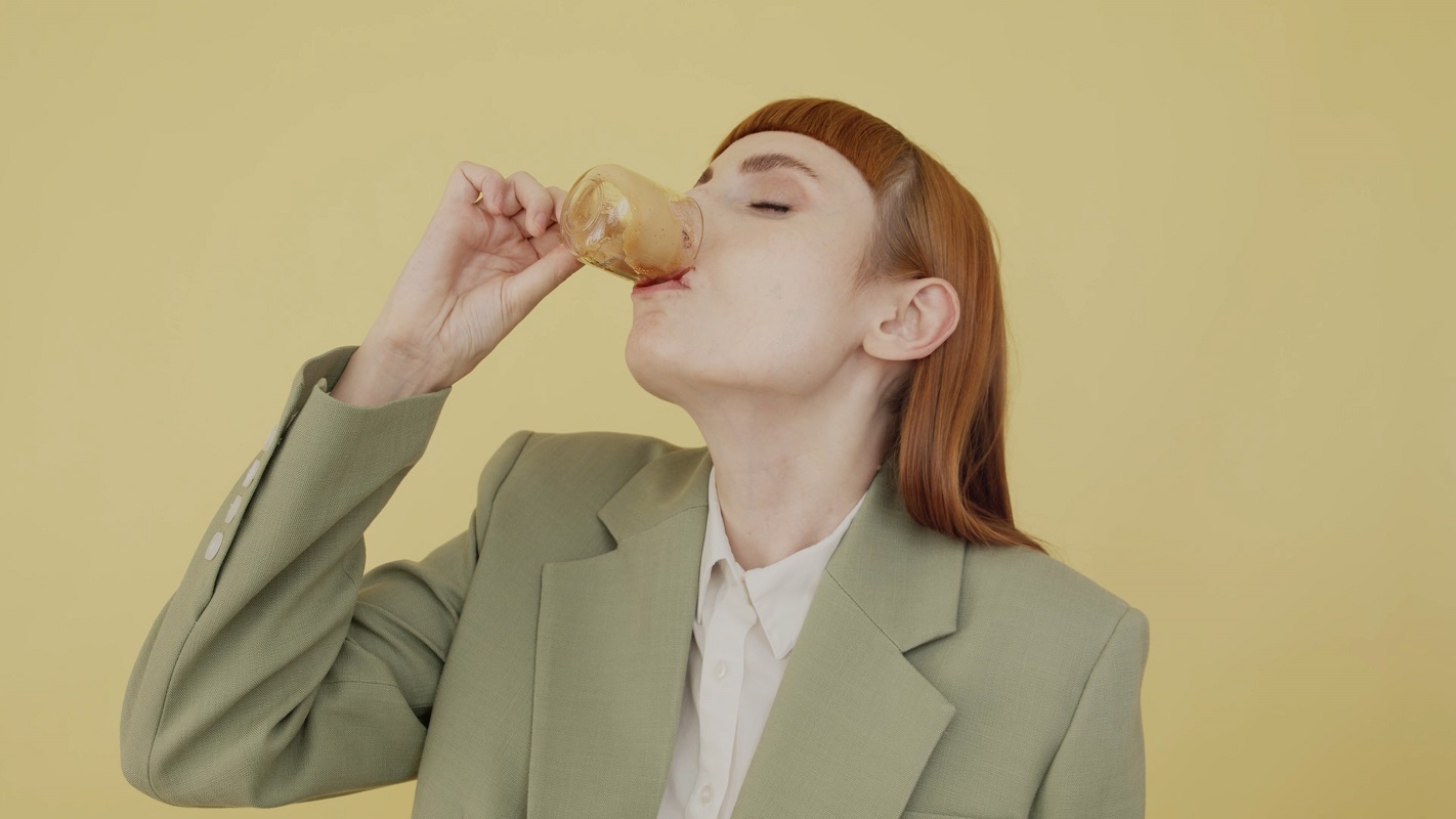 Die Videoarbeit von Luisa Hübner entstand für den Einsatz im Nespresso Atelier. Dabei vereint die Künstlerin die inszenierten Ebenen eines rituell anmutenden, stark ästhetisierenden Bildes und der Auseinandersetzung und Darstellung eines (sur)realen Vorganges. Objekte aus dem ungewöhnlichen Material Zucker und Kaffeekapseln als Metapher zur berühmten „rosa Brille“ runden den künstlerischen Rahmen mit Humor ab.
