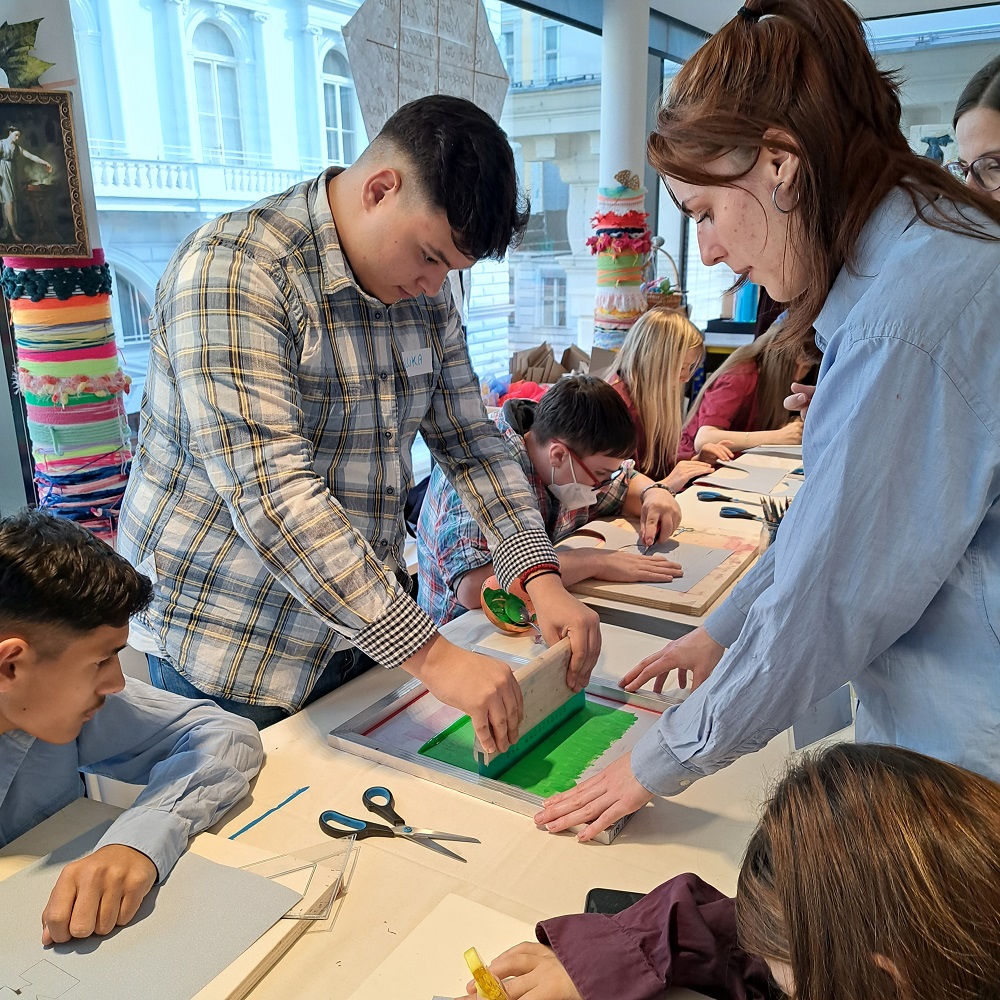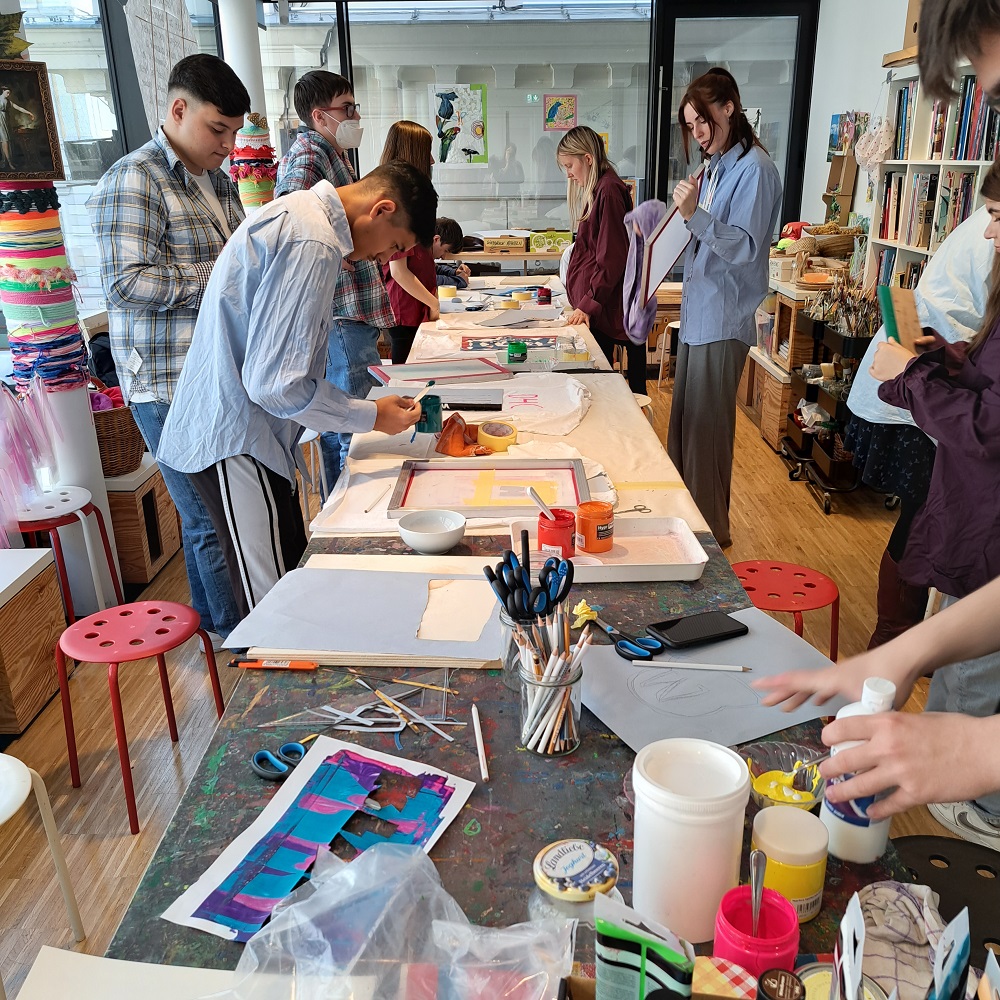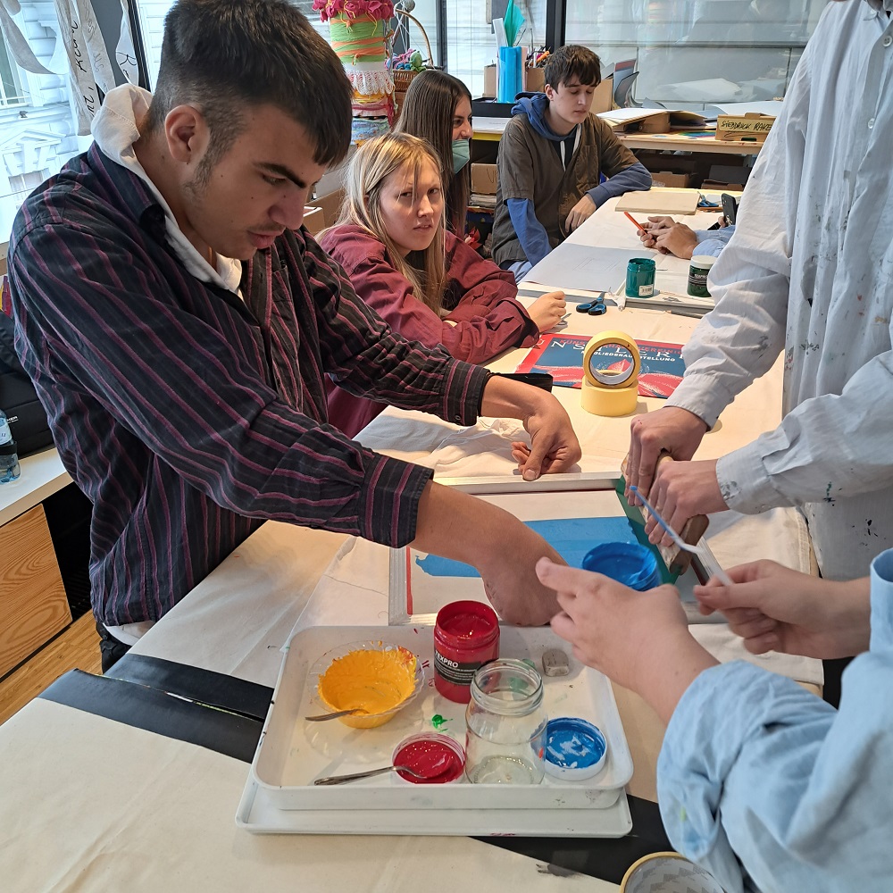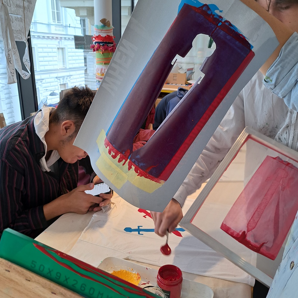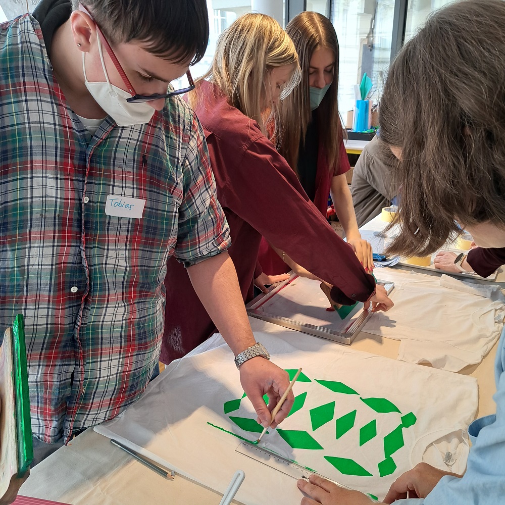 Gemeinsam mit dem Verein T.I.W. (Verein für Training, Integration und Weiterbildung) hat das Künstlerhaus im Rahmen des Jahres der Jugend 2022 einen Siebdruck-Workshop im Atelier der Vereinigung organisiert.